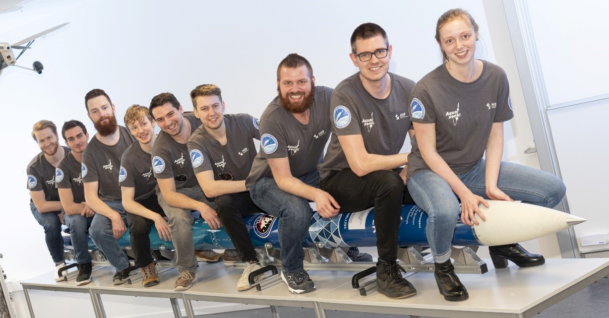 Das AQUASONIC II-Team: Obere Reihe von links: Christian Braasch, Julian Lake, Florian Sander, Fabian Eimann, Alexander Scharf, Luis Franke, Christian Dierken, Lennart Drengemann, Joachim Beyer. - Untere Reihe von links: Linus Andrae, Michael Sved, Samantha Salzwedel, Finn Hansch