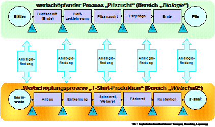 (pressebox) (Bremen, 20.05.2009) Ein ebenso spannendes wie zukunftsträchtiges Verbundprojekt startet aktuell am Bionik-Innovations-Centrum der Hochschule Bremen: Ein Konsortium aus drei Hochschulen und einem Praxispartner soll während der zweijährigen Laufzeit herausfinden, ob sich mit Hilfe der Bionik komplexe Wertschöpfungsketten verbessern lassen. Im Kern geht es bei dem Vorhaben BIONOS ("Bionic for optimizing supply chains" - "Verbesserte Steuerung von Wertschöpfungsketten durch Bionik") um die Beantwortung folgender Fragen: Wie bleiben die immer komplexeren Wertschöpfungsketten steuerbar? Wie lassen sie sich optimieren, zum Beispiel mit Blick auf den Faktor Zeit oder den Verbrauch an fossilen Brennstoffen? Die Fragestellung berührt sowohl rein ökonomische als auch ökologische Aspekte. Ziel des Forschungsprojekts BIONOS ist die Identifizierung und Überprüfung möglicher Lösungsansätze für eine verbesserte Steuerung globaler Wertschöpfungsketten in der Wirtschaft durch Analogiefindung aus der Biologie (s. u. Bild "Analogiefindung zwischen Biologie und Wirtschaft (Pilzucht, T-Shirt-Produktion"). Gegenstandsbereiche des Projektes sind logistische (Kooperations-)Netzwerke bzw. Wertschöpfungsketten sowohl in biologischen Organisationsformen (Systembereich Biologie) als auch in Unternehmen (Systembereich Wirtschaft).