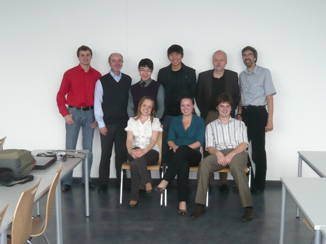 - Nach der Thesis-Präsentation: Die russischen Studierenden mit ihren Betreuern (obere Reihe): Alexander Limonov, Prof. Dr. Gerhard Wenke, Ivan Artamonov, Zhargal Dymbrylov, Prof. Dr. Dieter Kraus, Prof. Dr. Sören Peik. Untere Reihe: Irina Selyanina, Natalia Vesnina, Alexey Paramonov. (Foto: Hochschule Bremen)