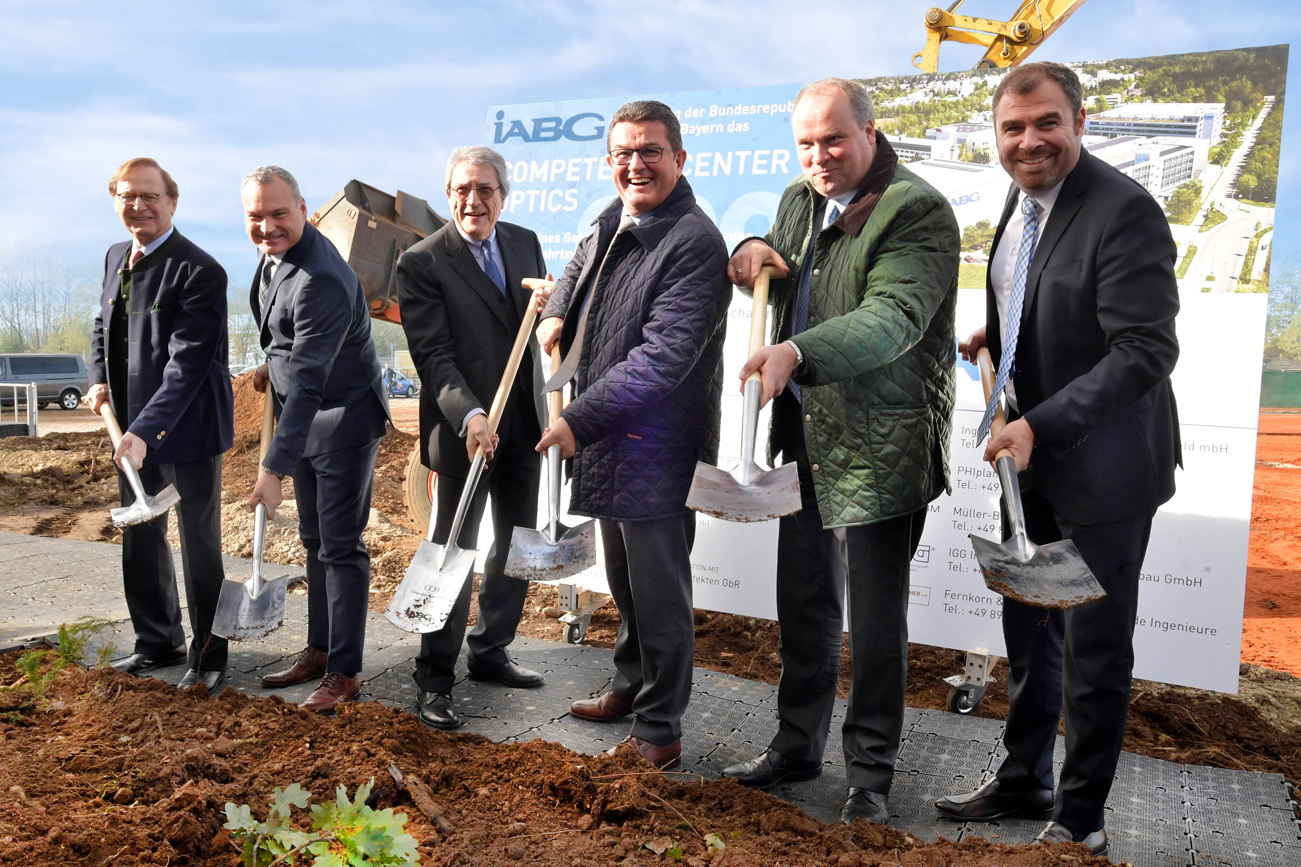 v.l.n.r.: Engelbert Kupka, Aufsichtsratsvorsitzender IABG, Dr.-Ing. Walter Pelzer, DLR, Prof. Dr. Rudolf F. Schwarz, Geschäftsführer IABG, Franz-Josef Pschierer, Bayersicher Staatsminister für Wirtschaft, Energie und Technologie, Christoph Göbel, Landrat Landkreis München, Florian Hahn, MdB