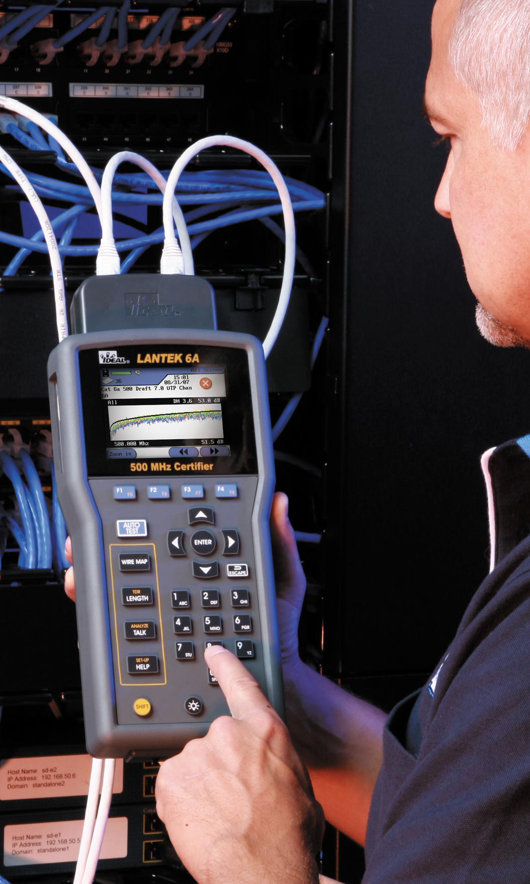 LANTEK-Zertifizierer für Alien Crosstalk Messungen