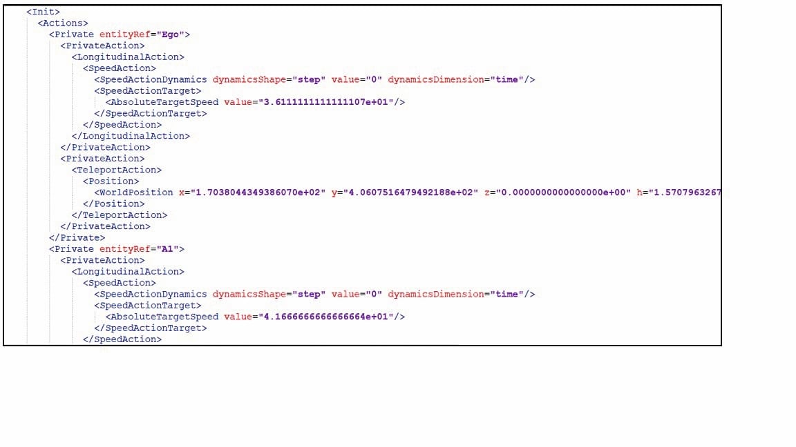 Figure 5: Sample image of Open Scenario format (XOSC)