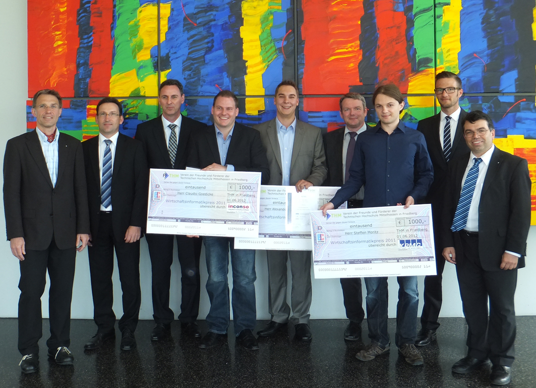 Moderator Prof. Dr. Matthias Willems freute sich über die Zahl von insgesamt 17 eingereichten Arbeiten. Er sah in dem Engagement der drei Unternehmen eine Bestätigung der nachhaltigen, engen Kooperation mit der Technischen Hochschule. Studentische Praktika und Abschlussarbeiten in den Firmen und Vorträge von Unternehmensvertretern an der TH seien für beide Seiten ein Gewinn. Die Preise dokumentierten, dass die Friedberger Absolventen der Wirtschaftsinformatik gefragt seien und Top-Unternehmen sich um sie bemühten.