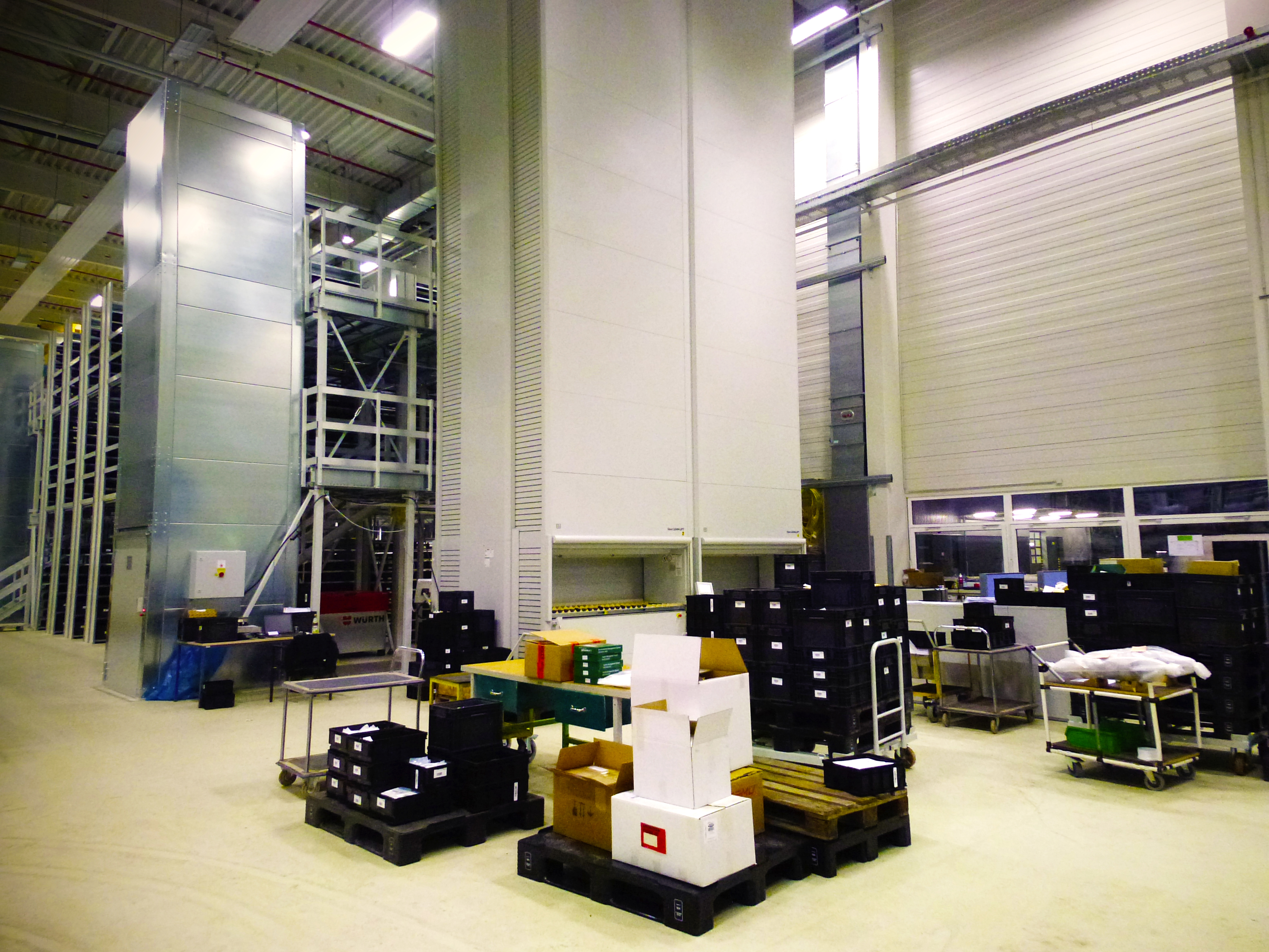 Neben den Standardprozessen Wareneingang und Warenausgang wurde auch die Fertigung mittels der PP-Schnittstelle integriert. Ein speziell auf den Kunden zugeschnittener Datenfunkdialog für die Einlagerung ermöglicht ein einfaches Verpacken im Anlieferungsprozess. Die Bereitstellung der Materialien für die Produktionsversorgung und die Kommissionierung der sonstigen Warenausgänge erfolgt zeitnah über die Steuerung der Kommissionierwellen.