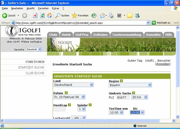 Spieler finden anhand vielfältiger Suchkriterien selber ihren Wunschplatz oder lassen das System automatisch anhand ihres schnell eingerichteten persönlichen Profils den Platz suchen (z.B. nach Land und/oder Region, bestimmtem Golfplatz mit Umkreissuche, Terminen, Handicap, Platzausstattung, Greenfees von – bis). Mit wenigen Mausklicks wird der gewünschte Platz zur gewünschten (freien) Zeit gebucht, bei einem Club nach einer bevorzugten Startzeit angefragt oder bei Bedarf auch wieder storniert. Buchungs- und Stornierungsbestätigungen werden automatisch über das System verschickt. Alle vom Spieler benötigten Daten für die Buchung, werden unter Berücksichtigung der geltenden Bestimmungen zum Datenschutz automatisch an den Club übermittelt (aus dem Profil des Spielers).