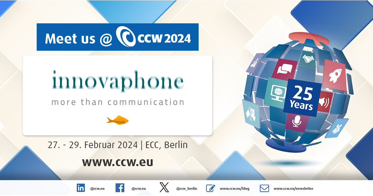 (pressebox) (Sindelfingen, 07.02.2024) innovaphone, Spezialist für moderne Arbeitsumgebungen, ist bei der CCW 2024 vom 27. Februar bis 29. Februar 2024 mit einem eigenen Stand vertreten. In Halle 3, Stand H8 können Kunden und Besucher die vielfältigen Möglichkeiten der innovaphone myApps Plattform gerade auch im Call Center-Bereich kennenlernen.