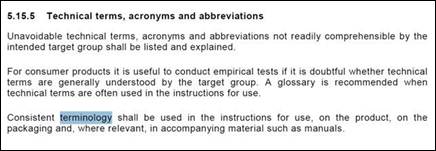 Konsistente Terminologie führt zu qualitativ hochwertigen Texten, zur Vermeidung von quellsprachlichen Textvarianten und damit zu reduzierten Übersetzungskosten. Die Forderung nach konsistent verwendeter Terminologie in allen produktbegleitenden Unterlagen wie Anleitungen, Verpackungstexten, Webinformationen und Vertragstexten wird jetzt auch durch die neue Doku-Norm ISO/IEC 82079 unterstrichen. Damit knüpft die Norm an die bereits branchenübergreifenden Bestrebungen an, Terminologie unternehmensweit zu vereinheitlichen und wiederzuverwenden.