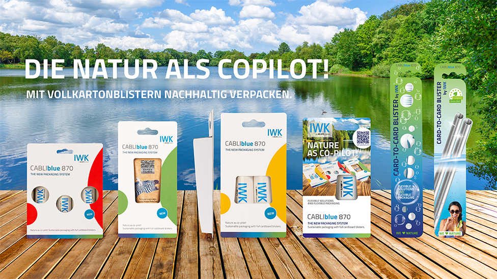 Mit der Natur als Copilot folgt die IWK dem globalen Megatrend zu faserbasierten Verpackungen und reduziert den Einsatz von Einwegkunststoff in diesem Segment. Mit der Einführung des Blistersystems CABLIblue 870 setzte das Unternehmen einen Standard für Nachhaltigkeit und Effizienz in der Herstellung von 100% recycelbaren Vollkartonblistern und gewährleistet einen reibungslosen Übergang von Kunststoff- zu Kartonblistern.