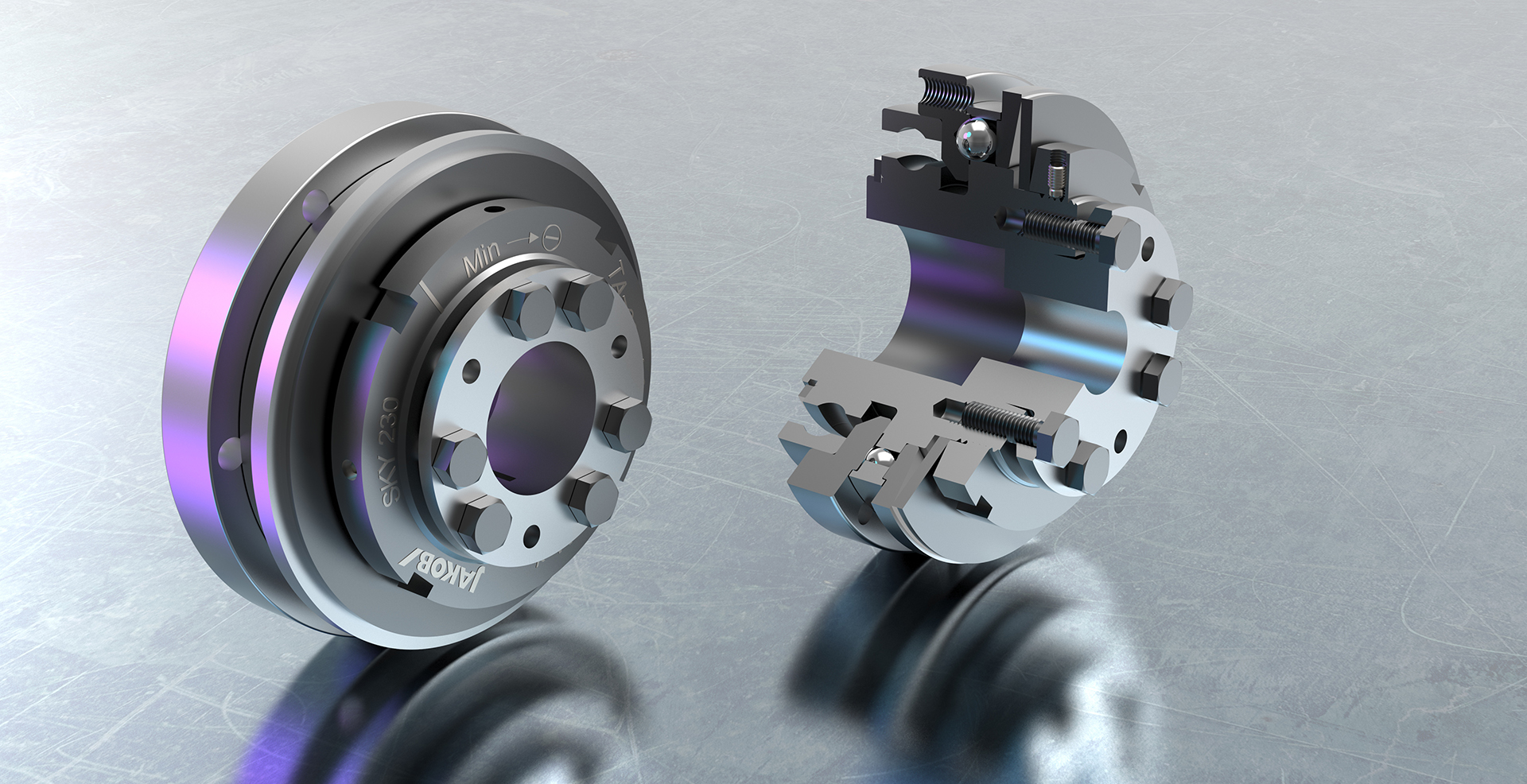 (pressebox) (Kleinwallstadt, 05.05.2020) Mit dem Typ SKY bietet JAKOB Antriebstechnik eine Sicherheitskupplung für indirekte Antriebe zur Überlastbegrenzung bzw. zum Kollisionsschutz, die den modernsten Anforderungen gerecht wird. Sie bietet hohe Ausrückmomente bis 9000 Nm bei einer sehr kompakten Bauweise. Durch die Konus-Klemmbuchse ist sie einfach zu montieren. Große Wellen- bzw. Bohrungsdurchmesser, eine hohe mögliche Lagerbelastung und die ausgezeichnete Rundlaufgenauigkeit runden das Konzept ab. Durch die Verwendung von hochfestem Vergütungsstahl mit Randschichthärtung bzw. Plasmabeschichtung der relevanten Funktionsflächen konnten besonders hohe Ausrückmomente realisiert werden.