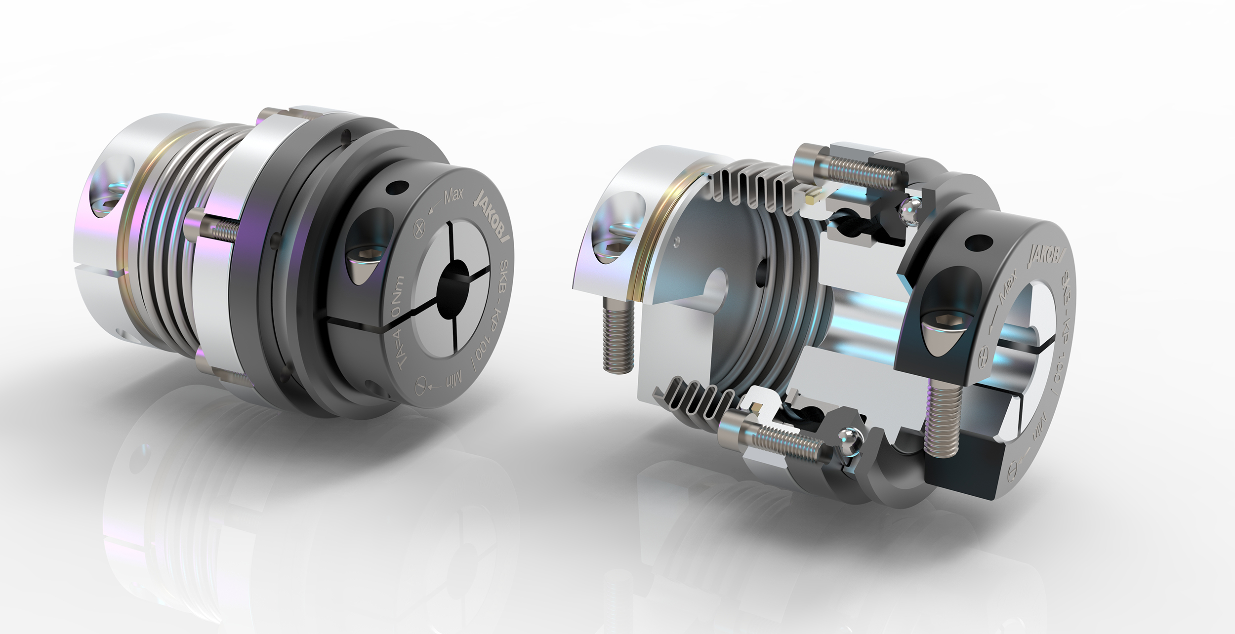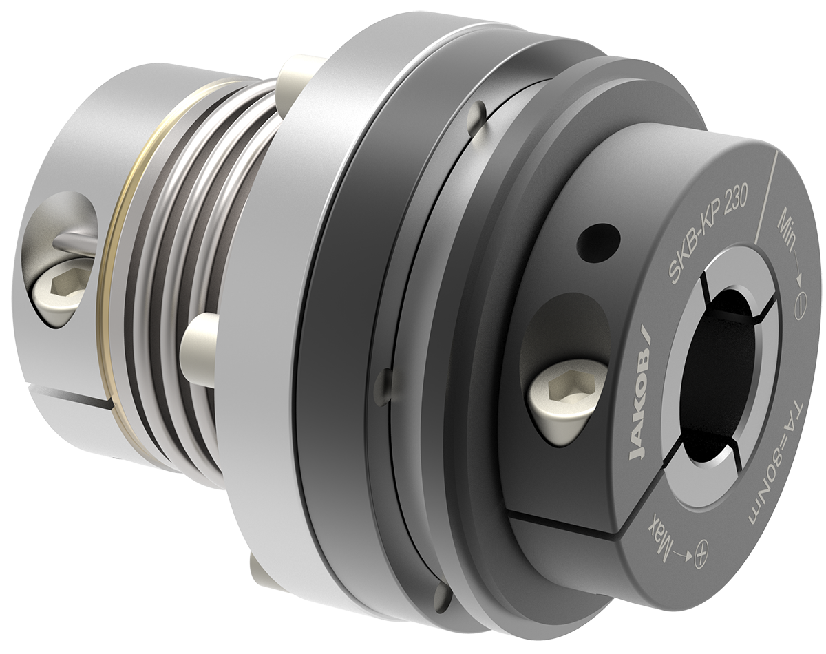 (pressebox) (Kleinwallstadt, 12.05.2020) Die Sicherheitskupplungen der Baureihe SKB-KP werden seit Jahrzehnten zum mechanischen Schutz von Antriebsaggregaten eingesetzt. In Hunderten von Anwendungen, insbesondere als Kollisionsschutz in Vorschubachsen von Werkzeugmaschinen, können sie ihre Wirksamkeit nachweisen. Die flexible, spielfreie Sicherheitskupplung der Baureihe SKB-KP ist eine Kombination aus Metallbalg-Servokupplungen und dem einzigartigen JAKOB-Sicherheitskupplungsmechanismus. Die Kompensation von Fehlausrichtungen, geringe Restkräfte, ein geringes Trägheitsmoment und eine genaue Übertragung des Drehmoments aufgrund der hohen Torsionssteifigkeit sind die hervorstechenden Eigenschaften dieser Kupplungsart.
