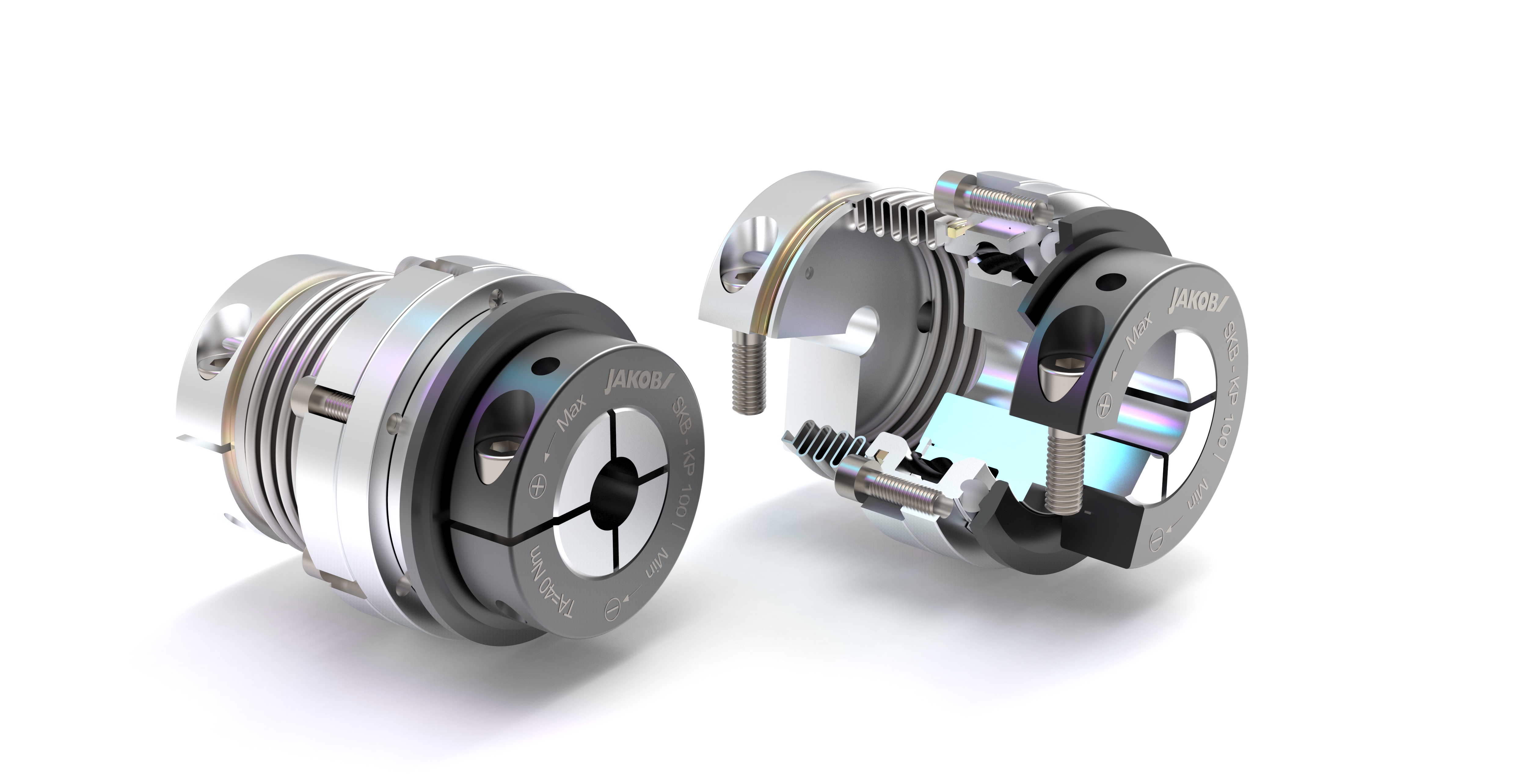 (pressebox) (Kleinwallstadt, 03.11.2020) The safety couplings of the series SKB-KP are being used since decades for mechanical protection of drive units. In hundreds of applications, particularly as collision protection in feed axes of machine tools, they are able to prove their effectiveness. The flexible, backlash free safety coupling of the series SKB-KP is a combination of metal bellows Servo-Couplings and the unique JAKOB safety coupling mechanism. The compensation of shaft misalignments, low residual forces, a low moment of inertia and an accurate transfer of the torque due to the high torsional stiffness are the salient characteristics of this type of coupling.