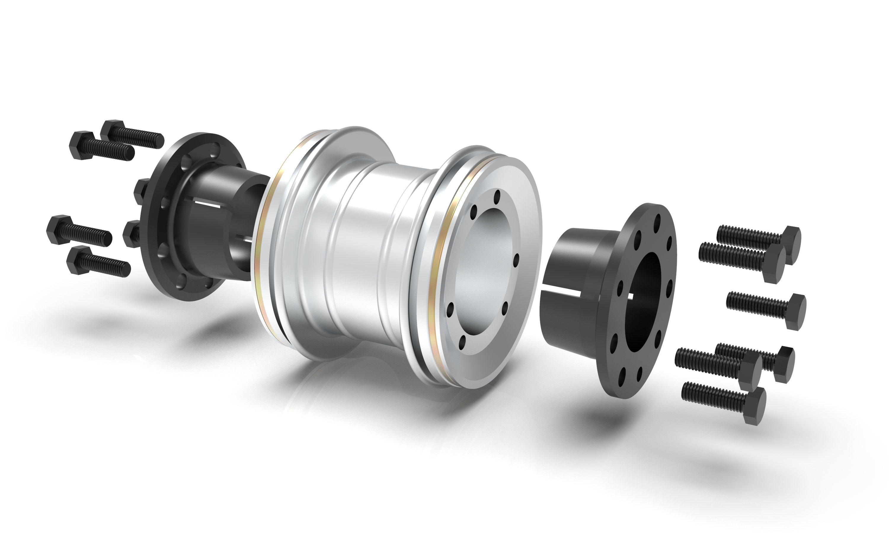 For such applications, torsionally rigid flexible couplings are generally ideal. The thin metal bellows have in addition to the balancing, also vibration-damping properties. The high flexibility of Jakob's KSS couplings with its 2-wave bellows and straight adapter and the easy mounting option of the coupling through the use of cone bushings as a shaft-hub connection guarantee a safe transmission of all forces and torques, even with small shaft diameters and torques without additional feather key. The rotationally symmetric design ensures excellent, dynamic operating behavior, even at very high speeds. The high torsional rigidity and the very low restoring forces with shaft misalignment as well as the low moment of inertia characterize the coupling type. Torques from 25 to 2500 Nm are possible. Highest quality in processing and the materials used make the KSS couplings a reliable and economical component. It is used, in addition to the test stands as a highlighted example, also particularly often in servos and actuators.