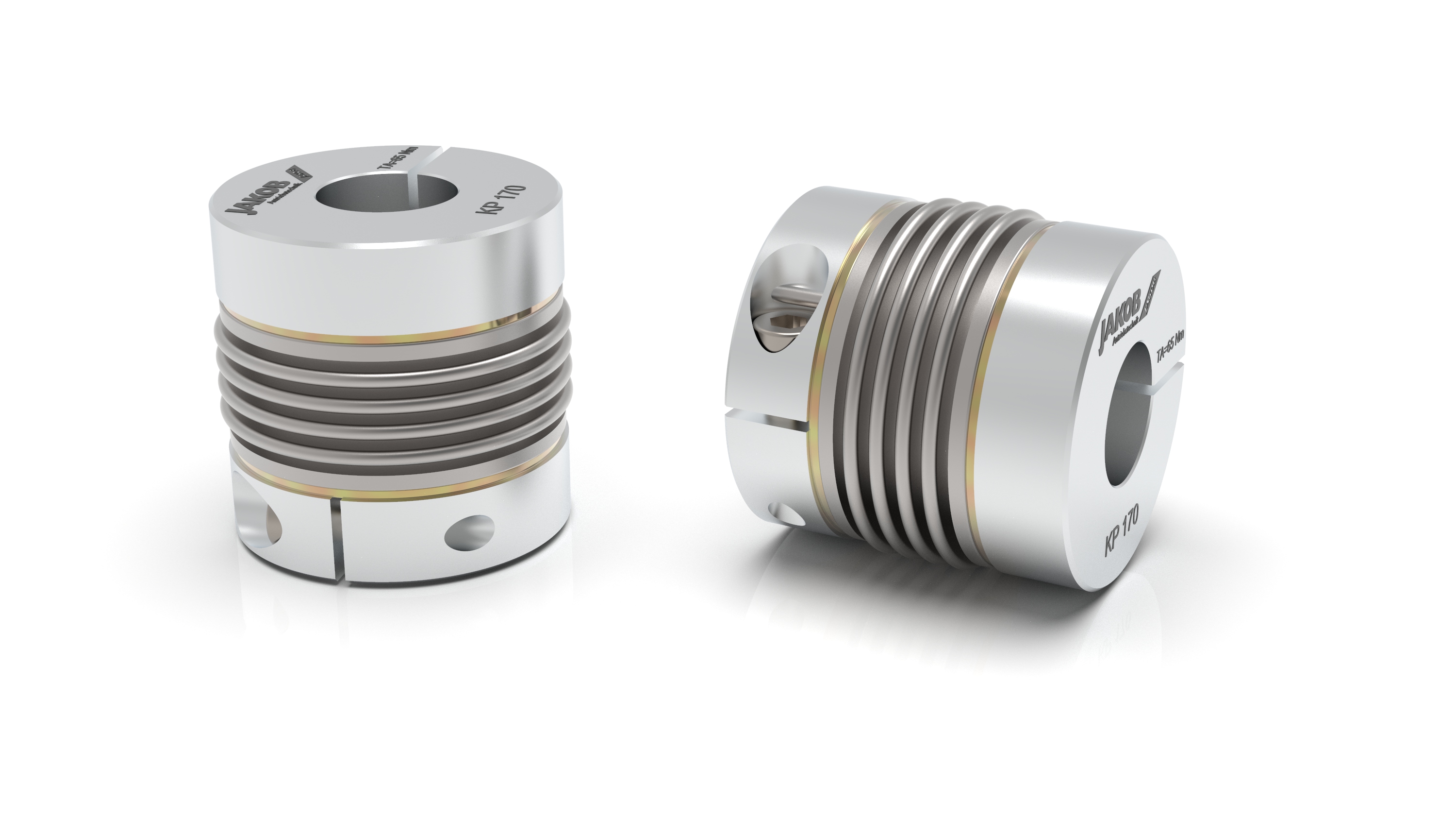(pressebox) (Kleinwallstadt, Germany, 19.07.2021) The metal bellows coupling series KP with 4-corrugated bellows and two radial clamping hubs, is a version with short overall length in the JAKOB coupling range. This makes it particularly suitable for applications with minimal shaft spacing and limited installation conditions. In addition, the very high torsional rigidity and the easy-to-install clamping hub design are worth mentioning. A low moment of inertia and good values for the permissible shaft misalignments and restoring forces complete the positive picture.