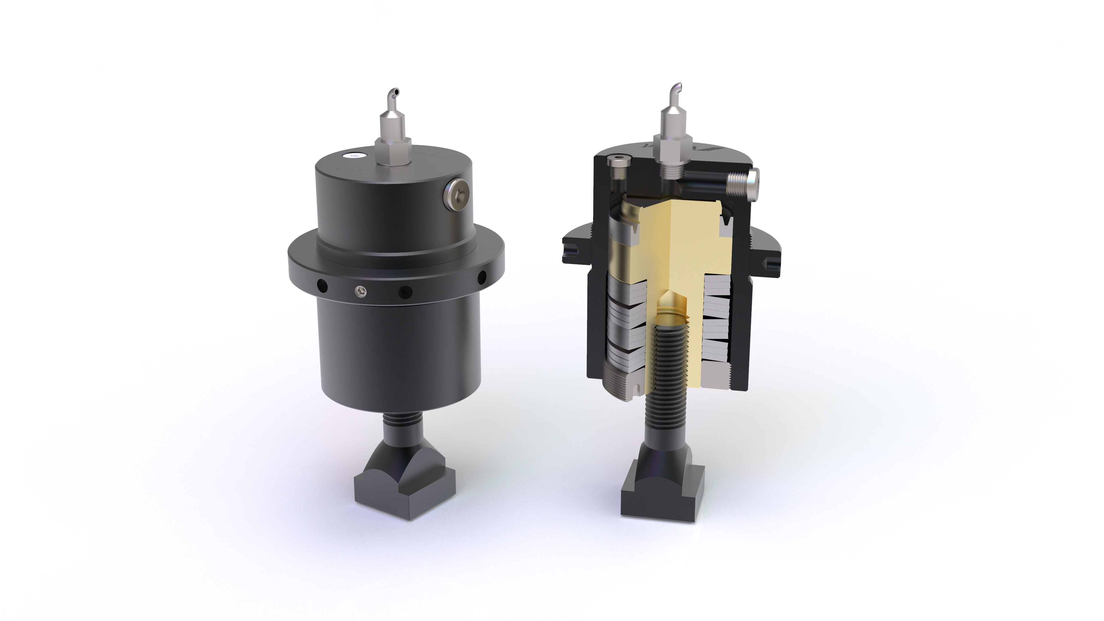 (pressebox) (Kleinwallstadt, 11.01.2022) The hydromechanical spring-loaded cylinders of the ZSF series from JAKOB Antriebstechnik offer robust and reliable clamping elements. These spring-loaded systems can be used wherever displaceable or movable machine parts must be temporarily clamped or locked. Other applications can be found in jig construction and for workpiece or tool clamping.