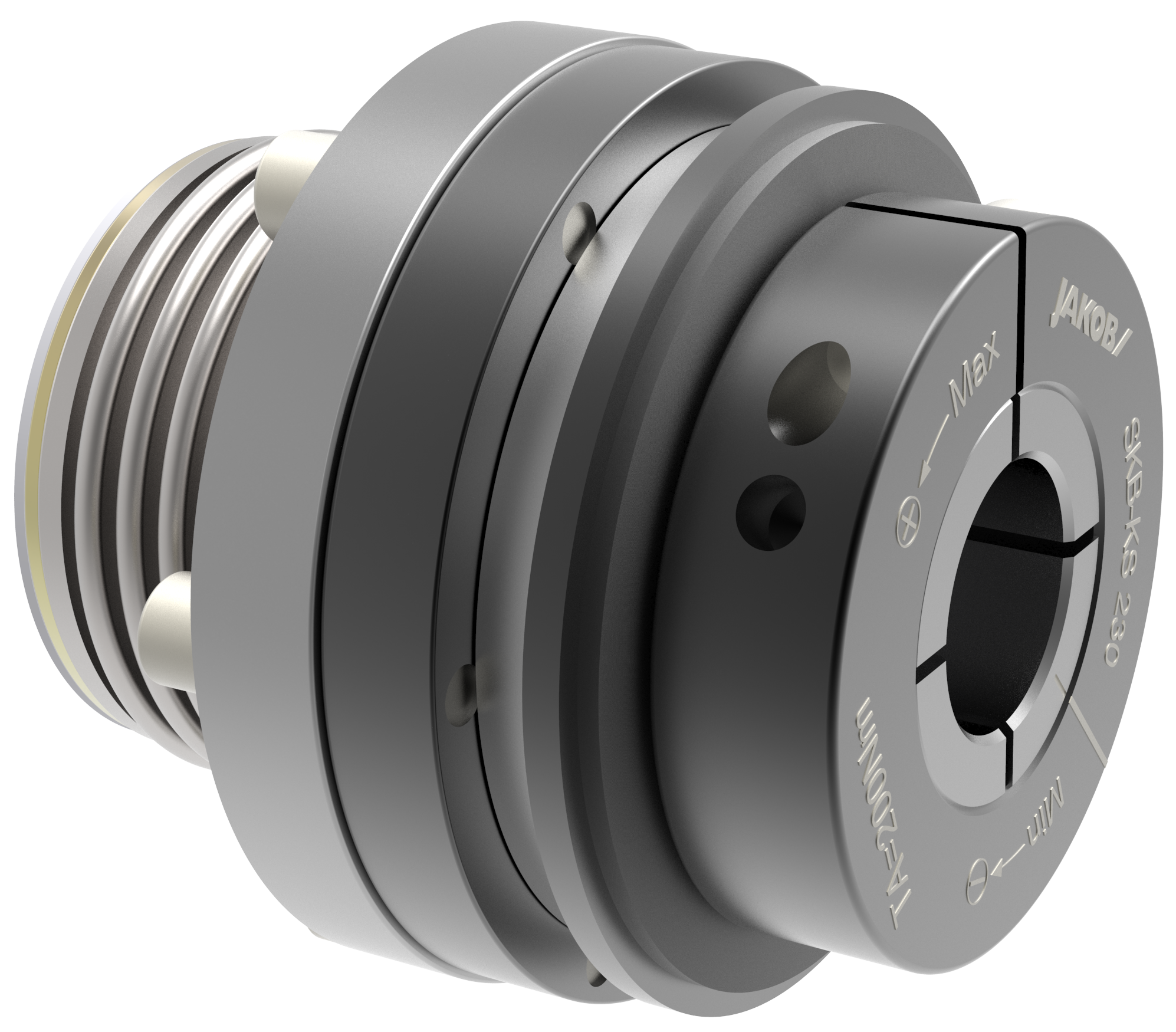 (pressebox) (Kleinwallstadt, 24.06.2019) To protect machine tools, safety couplings have been indispensable for many decades in many applications in drive technology. As collision protection, they protect machines and users from damage, downtime and thus also expenses.The SKB-KS series for direct drives is backlash-free and thanks to the metal bellows construction flexible to compensate for misalignments. The bellows-side conical clamping bush is rotationally symmetrical and allows the transmission of high torques at high speeds. The safety couplings of the SKB-KS series transmit torques of 2 - 2000Nm. Special designs or alternative lengths are also possible on request.