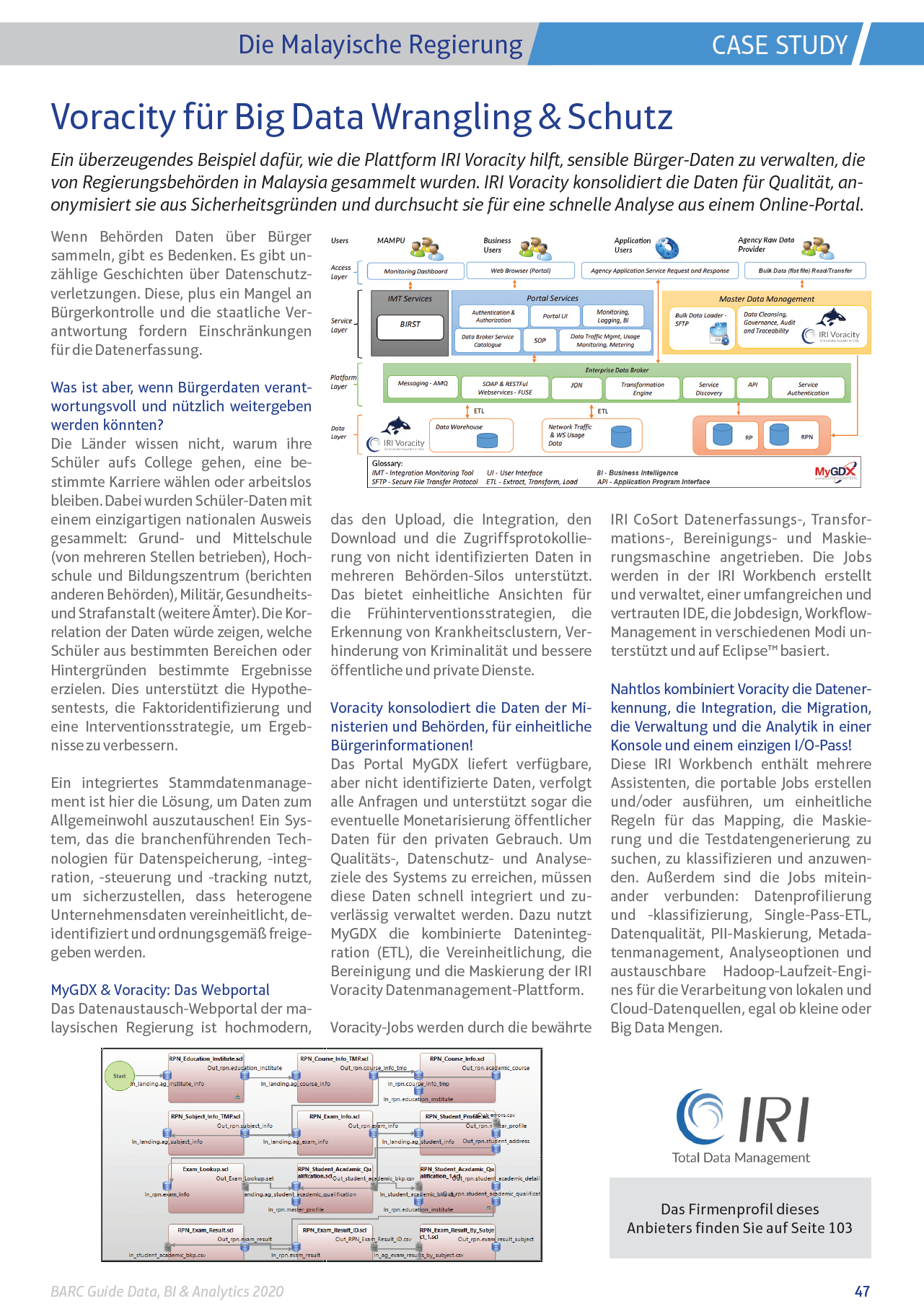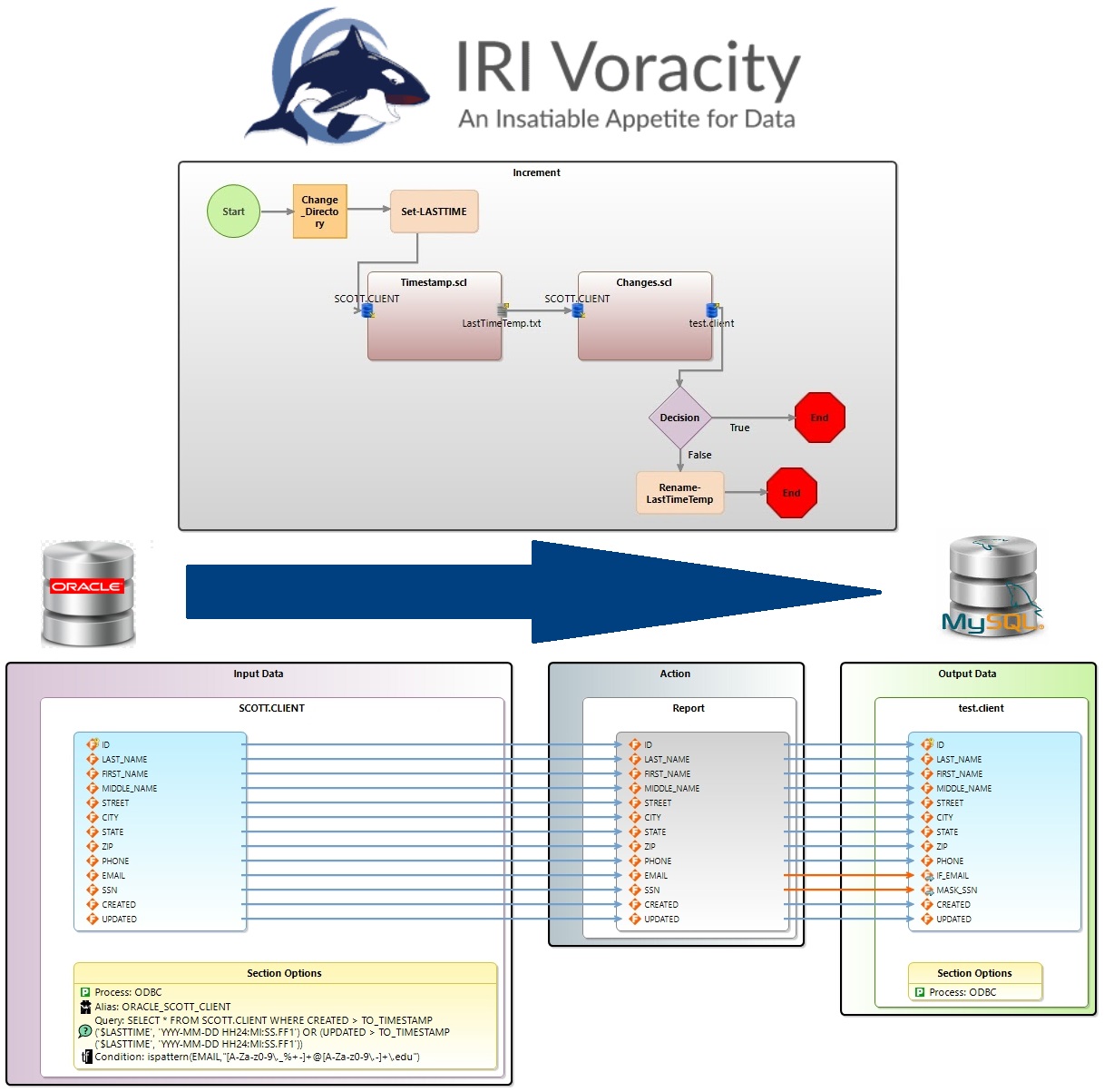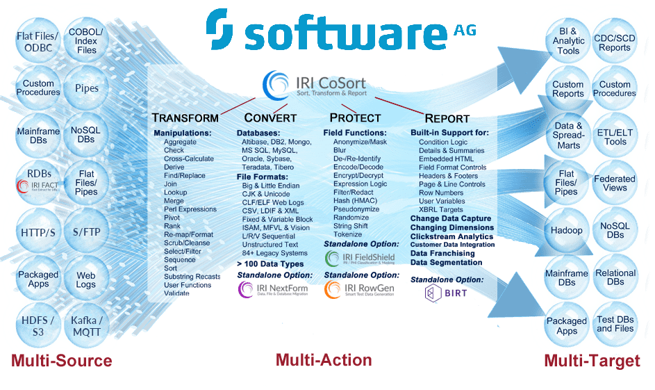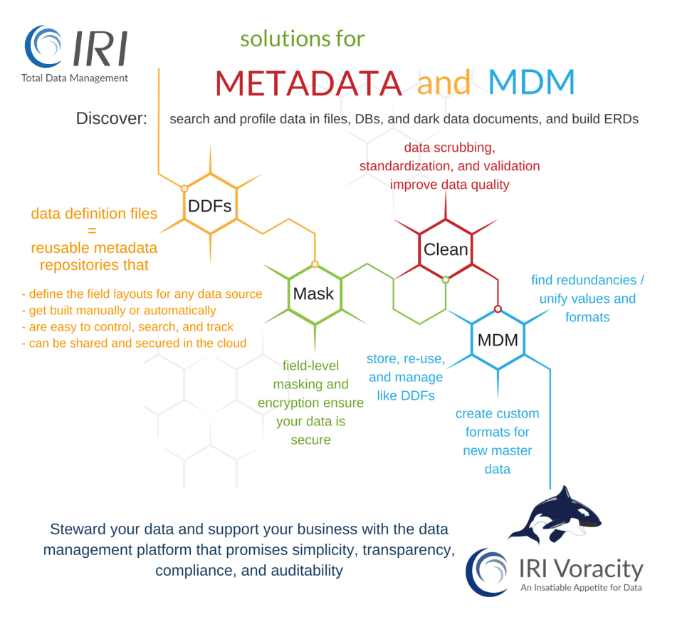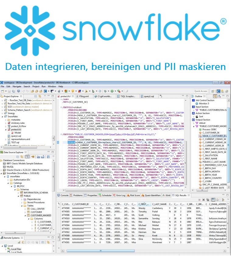 Voracity ist eine End-to-End-Datenmanagement-Plattform, die auf Eclipse basiert und von CoSort oder Hadoop für die Erkennung, Integration, Migration, Governance und Analyse von großen + kleinen, un- + strukturierten lokalen oder Cloud-Daten unterstützt wird. DW/BI, DB/Test und Compliance (z.B. GDPR) Architekten in jeder Branche verwenden Voracity, um zu klassifizieren, zu suchen, zu transformieren, zu reinigen, zu maskieren, zu verschieben, zu berichten, zu analysieren plus Testdatengenerierung!