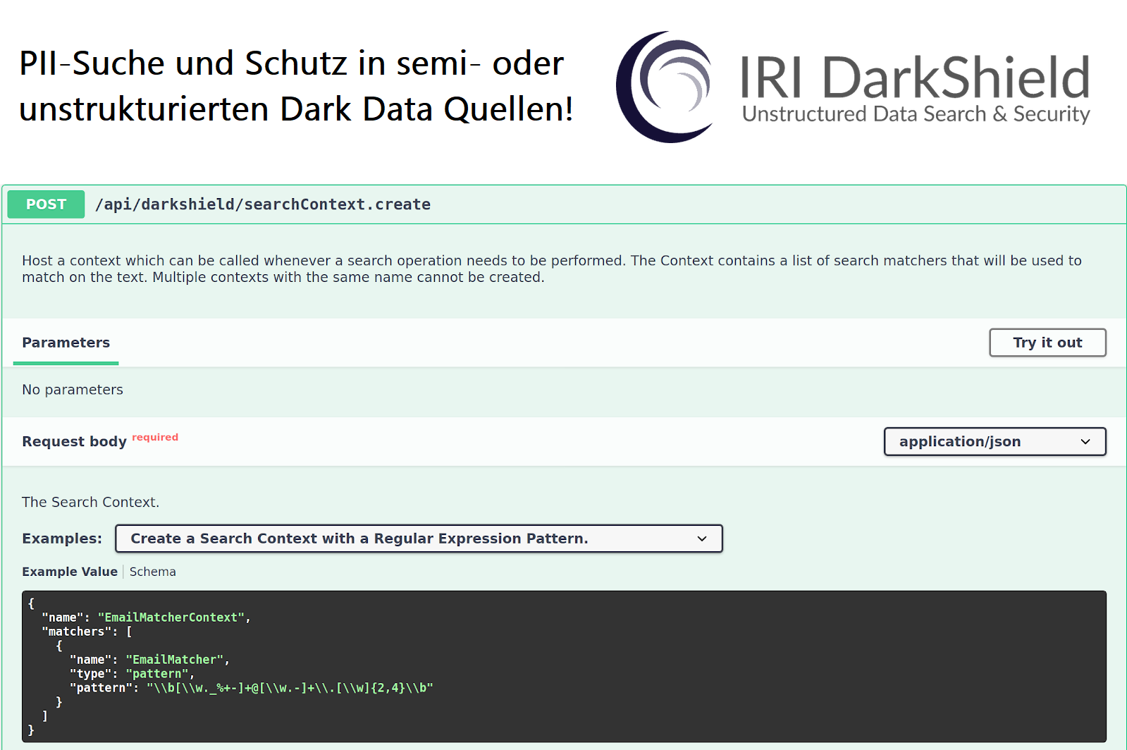 Die DarkShield-Basis-API wird für die Suche und Maskierung von unstrukturiertem Text außerhalb des Dateikontextes verwendet. Alternativ dazu bietet die DarkShield-Files-API die Möglichkeit, PII in Dateien zu suchen und zu maskieren.