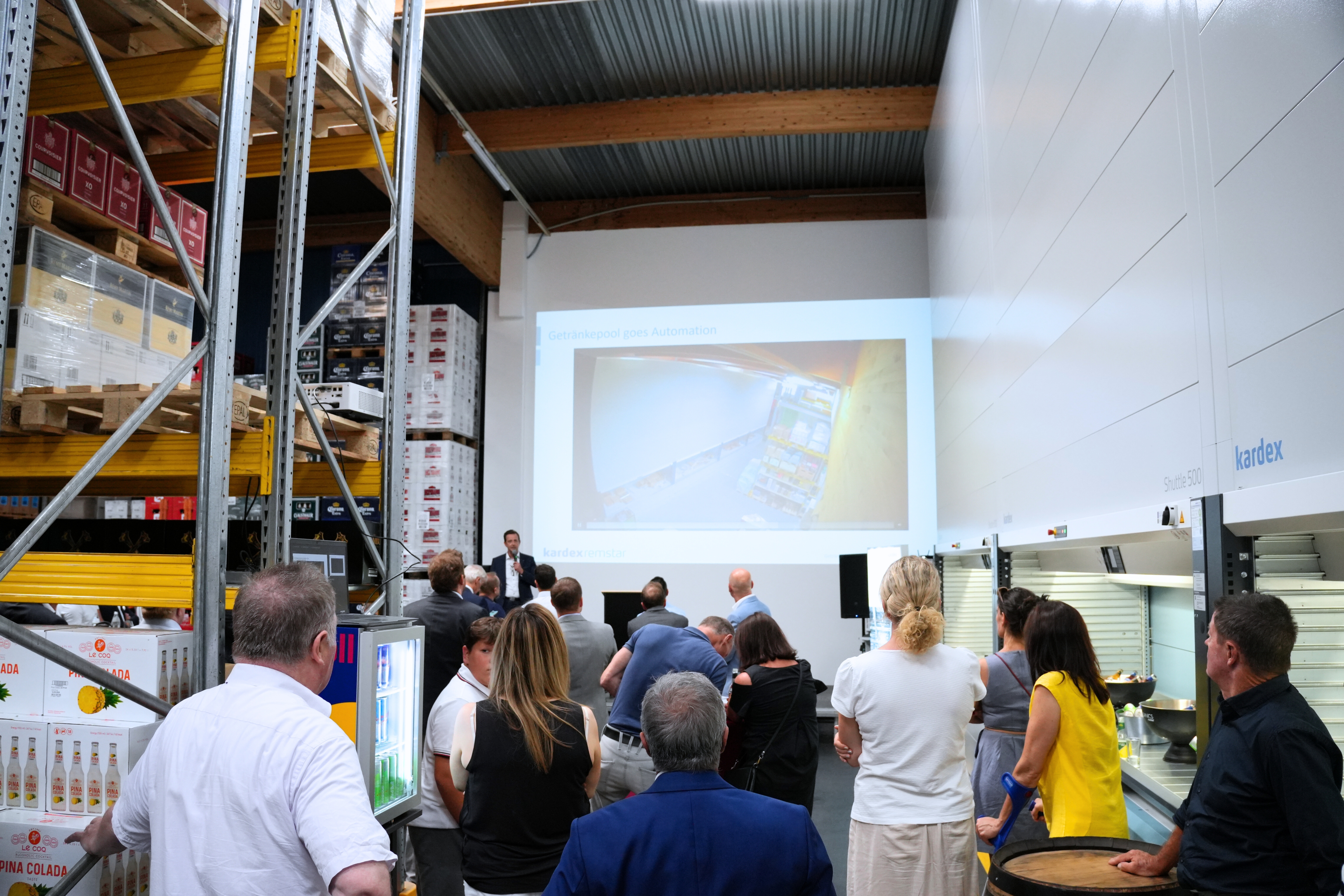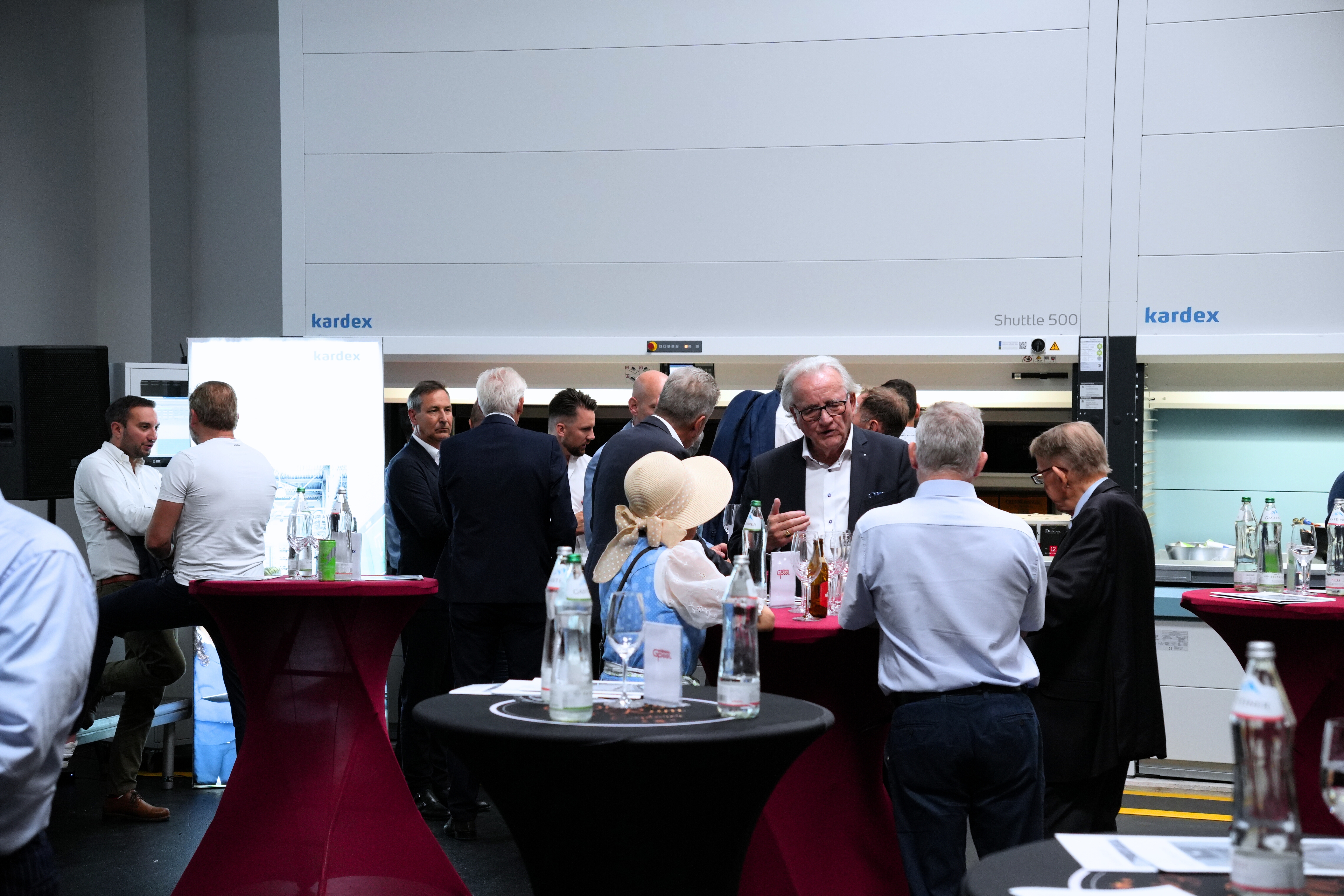 Get-Together der Gäste nach der offiziellen Eröffnung der neuen Automatisierungsanlage von Getränkepool