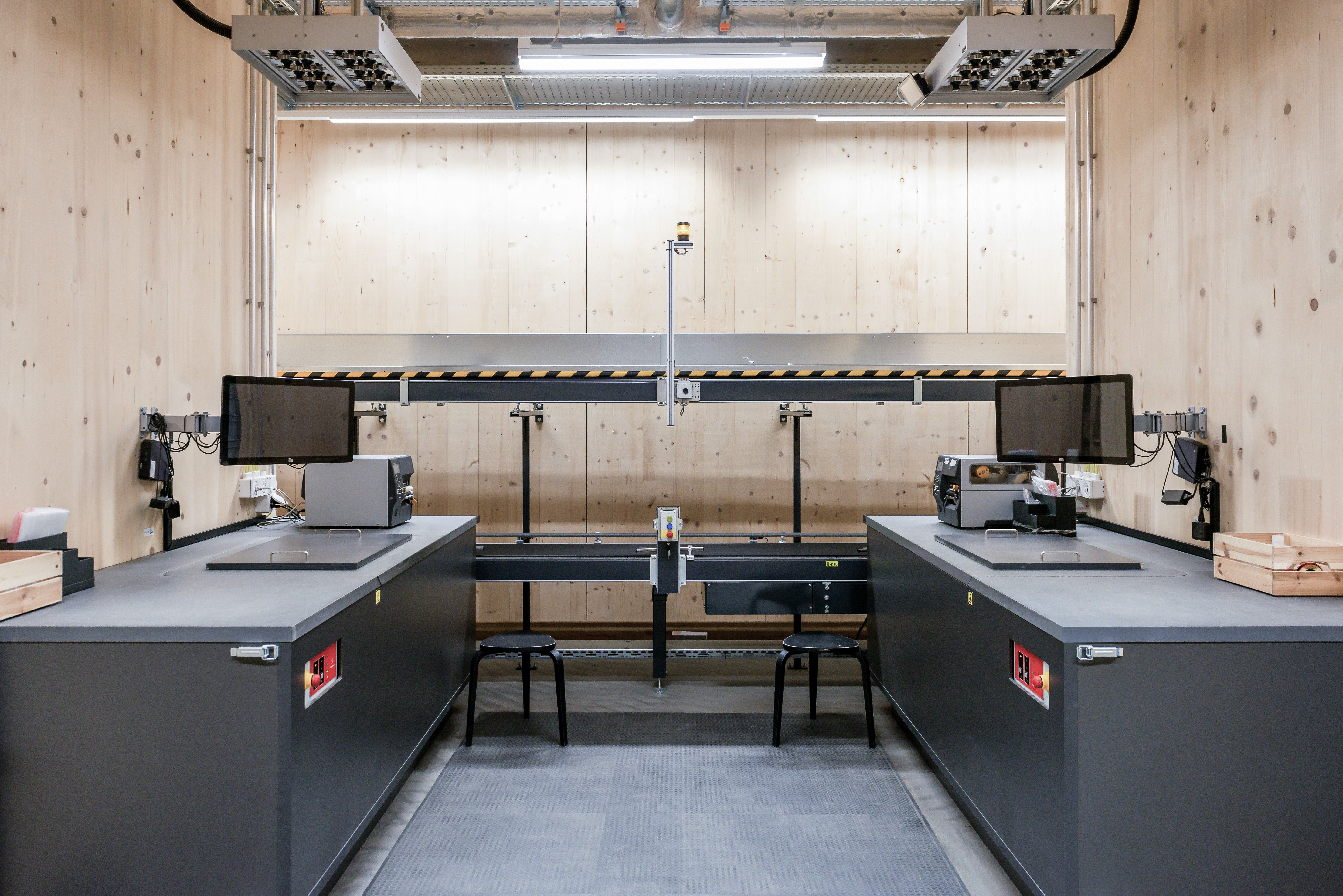 Nicht nur zwei Paletten nebeneinander haben im neuen Shuttle XP 1000 Platz. Bei ABB in Oerlikon wurde die Entnahmeöffnung so hoch gewählt, dass auch Paletten mit Doppelrahmen eingelagert werden können