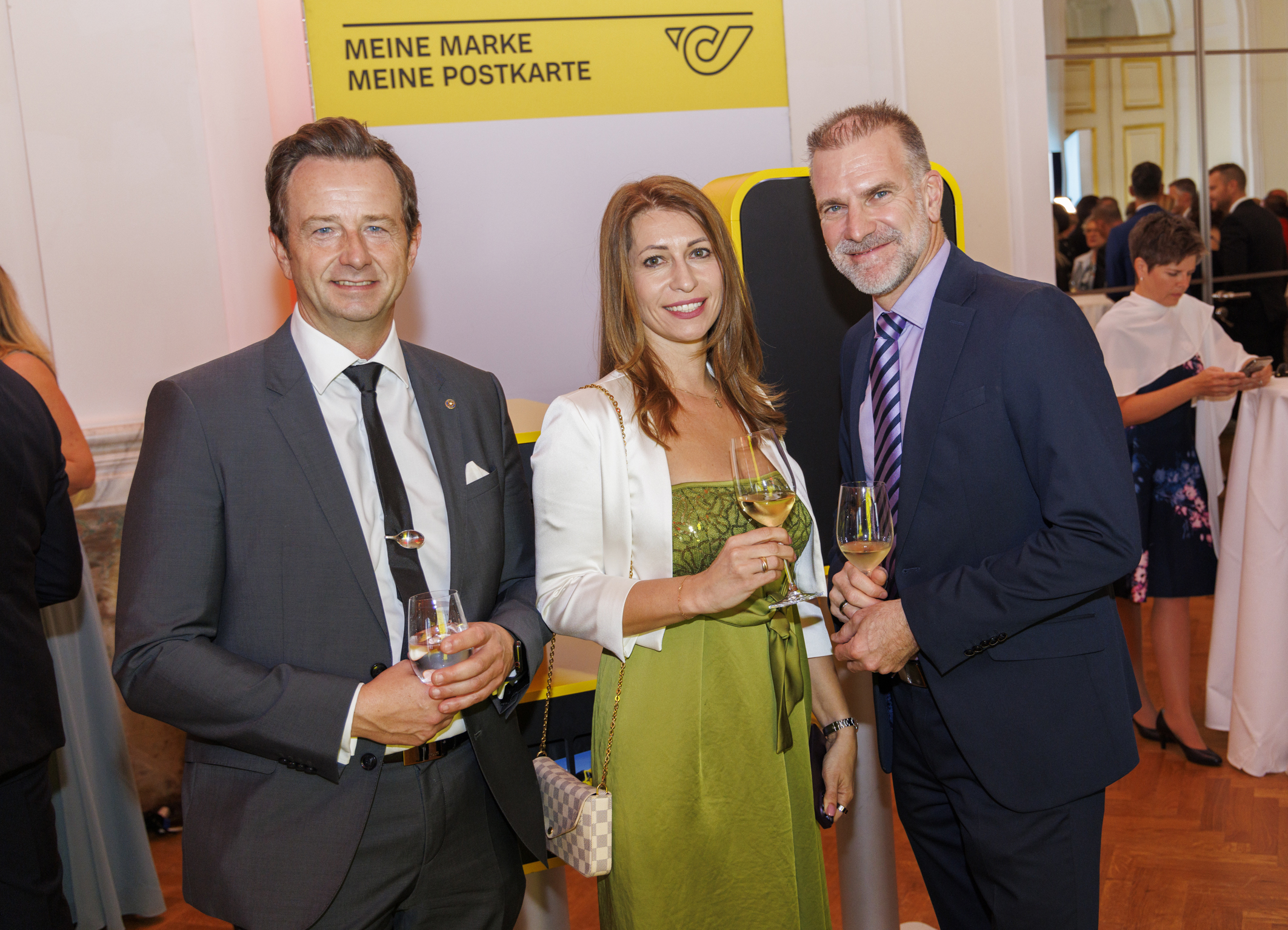 Peter Wilfinger (Geschäftsführer Kardex Austria), Katja Olivier and Gerhard Weissinger (Geschäftsführer Kardex Austria) beim HERMES.Gala 2024 in der Wiener Hofburg.