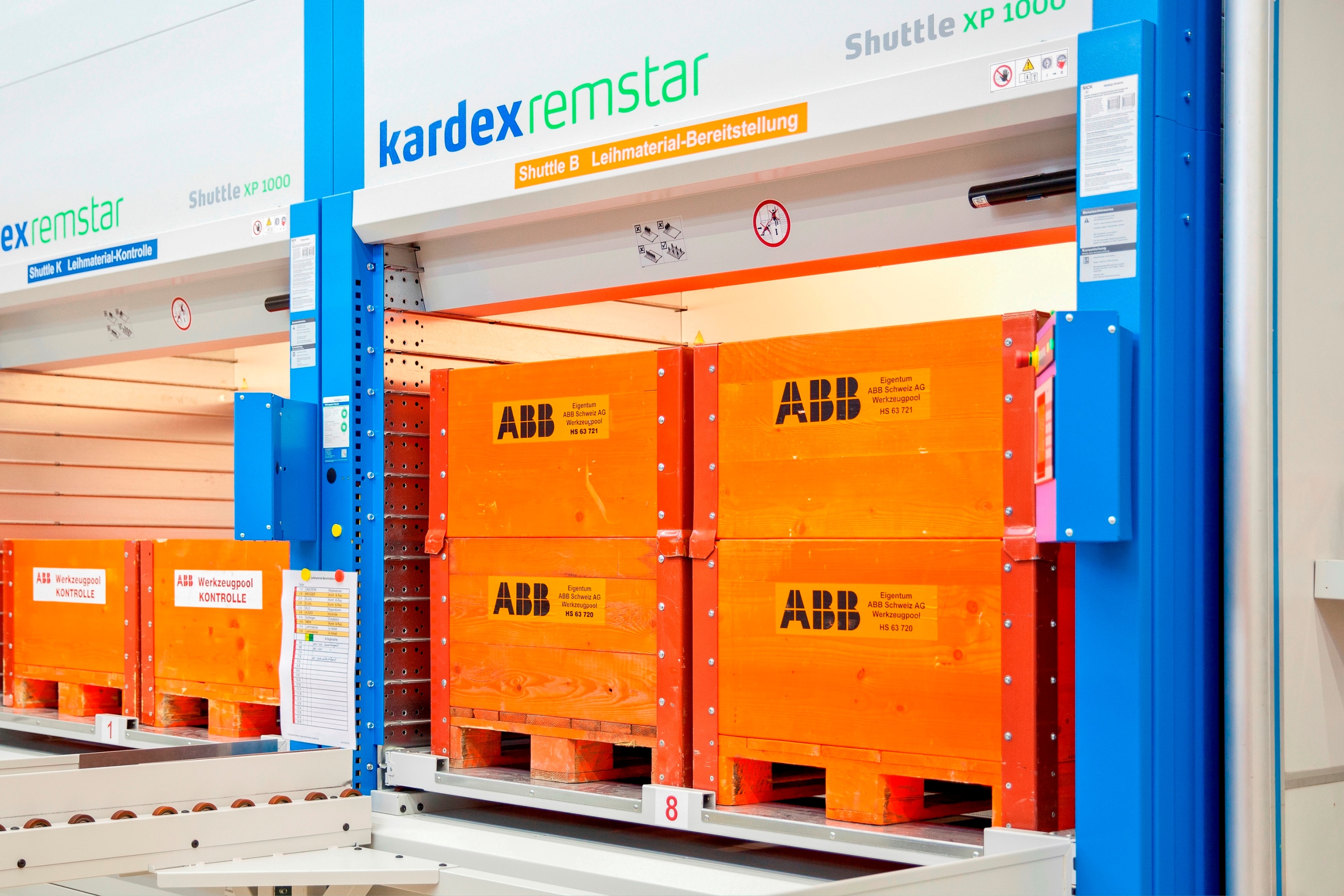 Insgesamt 20 Lagersysteme von Kardex Remstar sind bei ABB in Oerlikon im Einsatz. Dank des neuesten Lagerlift-Modells Shuttle XP 1000 (vorn) mit standardmäßiger Paletten-einlagerung sind die Bereitstellungsprozesse im Werkzeugpool effizienter geworden