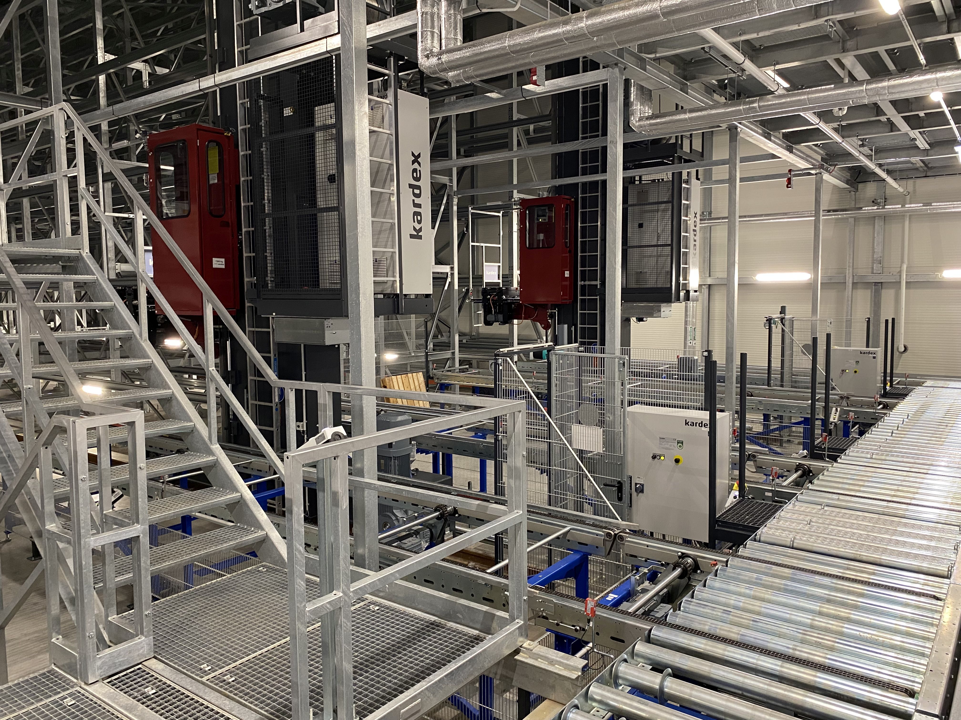 Das Herzstück der Investition bilden drei Regalbediengeräte vom Typ Kardex MSingleB-1300/36-ZT. Mit einer Höhe von 36 m stehen sie für eine extrem gute und nachhaltige Flächennutzung. Die Lastaufnahmemittel ermöglichen ein zweifachtiefes Ein- und Auslagern bei einer Traglast von bis zu 1.300 kg. Die Fahrbefehle generiert eine moderne Steuerung (SPS) vom Typ Siemens S7. Die automatische Fördertechnik mit 79 Antrieben wird für eine nahtlose Anbindung an das bestehende Lager sorgen. Für die Materialflusssteuerung