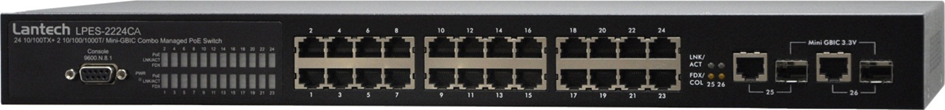 Lantech LPES-2224CA PoE switch is a highly integrated managed and PoE power feeding switch to deliver MTU, Transportation, VoIP, Surveillance applications. The 24 PoE interfaces provide flexible configuration options for the network.