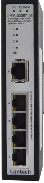 The Lantech IPES-0005T-4B is a 5-port 10/TX with 4 PoE mode B Injector Industrial PoE Switch for plug-and-play installation. This slim switch is designed with Wall-mountable or DIN rail mountable, making installation more easy.