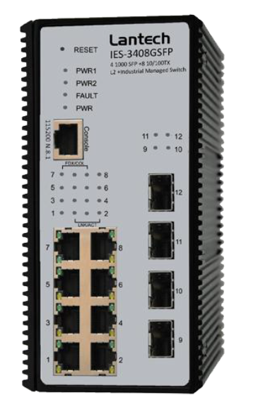 Lantech IES-3408GSFPM-PT is a high performance L2+ industrial switch which provides 8x10/100TX + 4 Giga SFP uplinks that complies with IEC 61850-3 & IEEE 1613. It delivers ITU G.8032 ring recovery less than 20ms, comprehensive QoS, advanced security including ACL L2/L3, TACAS+, SSH/SSL, DHCP Option 82 and IGMPv1/v2/v3 & router port, QinQ (double tag VLAN) , MVR (multicast VLAN registration), which are important features required in large network. It also supports Cisco Discovery Protocol (CDP) and LLDP for Ciscoworks to detect the switch info and show on L2 map topology.