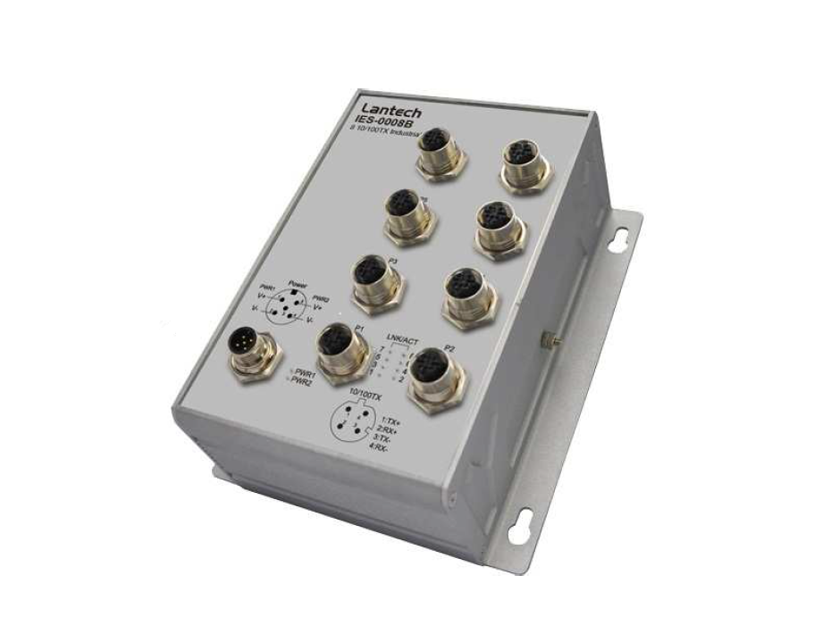 Lantech IES-0008B-43 is an 8 10/100 Base-TX with M12-connctor unmanaged industrial switch for IP43 rated protection, which meets the high reliability requirements demanded by industrial rolling stock applications.