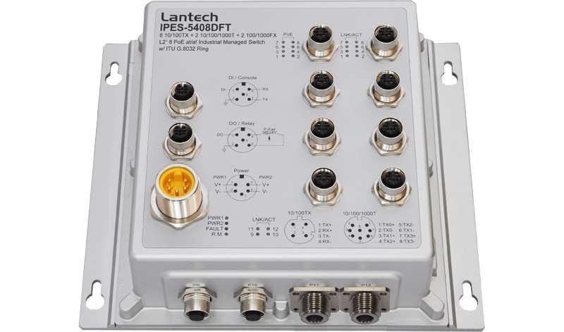 Lantech IPES-5408DFT (IP67) features high reliability and robustness coping with extensive EMI/RFI phenomenon, environmental vibration and shocks usually found in rail-train, trackside, transportation, surveillance, Wireless backhaul and mining factory.
