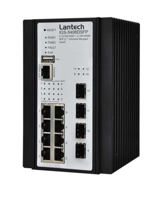 Lantech IGS-5408DSFP features high reliability and robustness coping with extensive EMI/RFI phenomenon, environmental vibration and shocks usually found in factory, substation, steel automation, aviation, mining and process control. It is the best solution for Automation, transportation, surveillance, Wireless backhaul, Semi-conductor factory and assembly lines.
