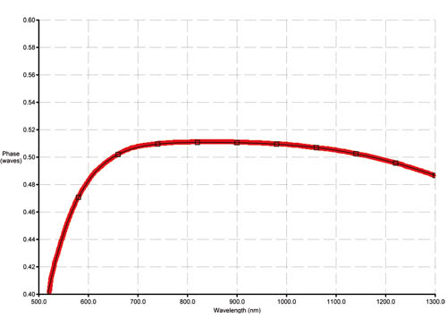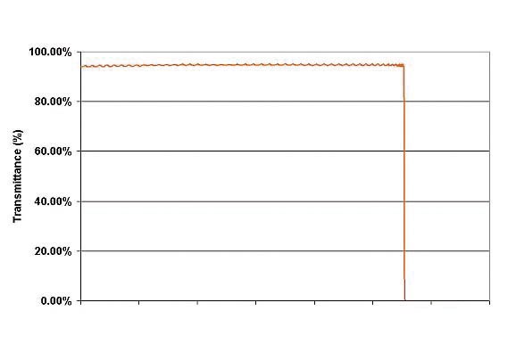 Low-Ripple Kantenfilter in der Kurzpass-Version. Aufgetragen ist die Transmission im Verhältnis zur Wellenlänge