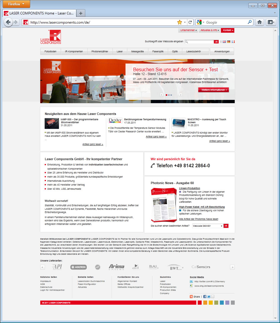 LASER COMPONENTS-Website erstrahlt in neuem Licht