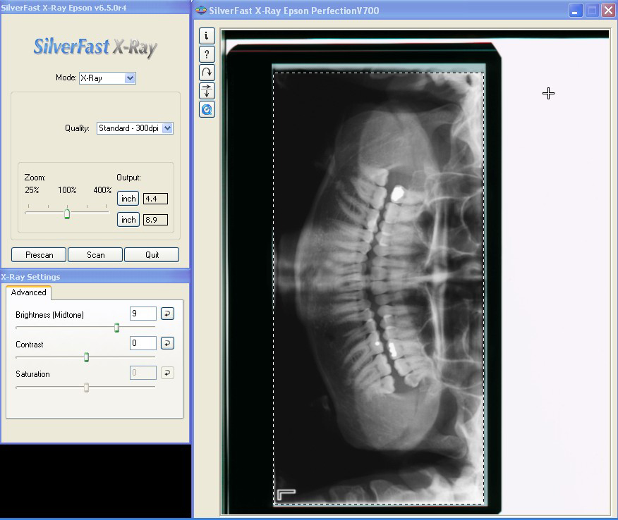The automated functions of the software allow anyone to simply click a button and obtain near perfect results. The scan frame is dragged around the X-ray film displayed on the screen and the intelligent auto-adjust function takes care of the rest!