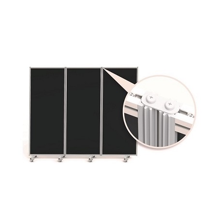 Die Besonderheit des E25-Faltwandsystems ist das revolutionäre Scharniersystem mit dem, ohne zusätzliche Abdeckung, eine vollständig licht- und laserstrahldichte, flexible Verbindung erreicht wird. Egal in welchem Winkel (0° - 360°) die Wand aufgestellt wird, der Schutz vor Strahlung ist immer gegeben. Damit kann die Stellwand z.B. auch als Raumteiler in Laboren oder lasersichere Abtrennung um optische Tische aufgestellt werden. Die modulare E25 Stellwand ist sofort einsatzbereit (Ready-to-Use) und ohne Montage verwendbar.