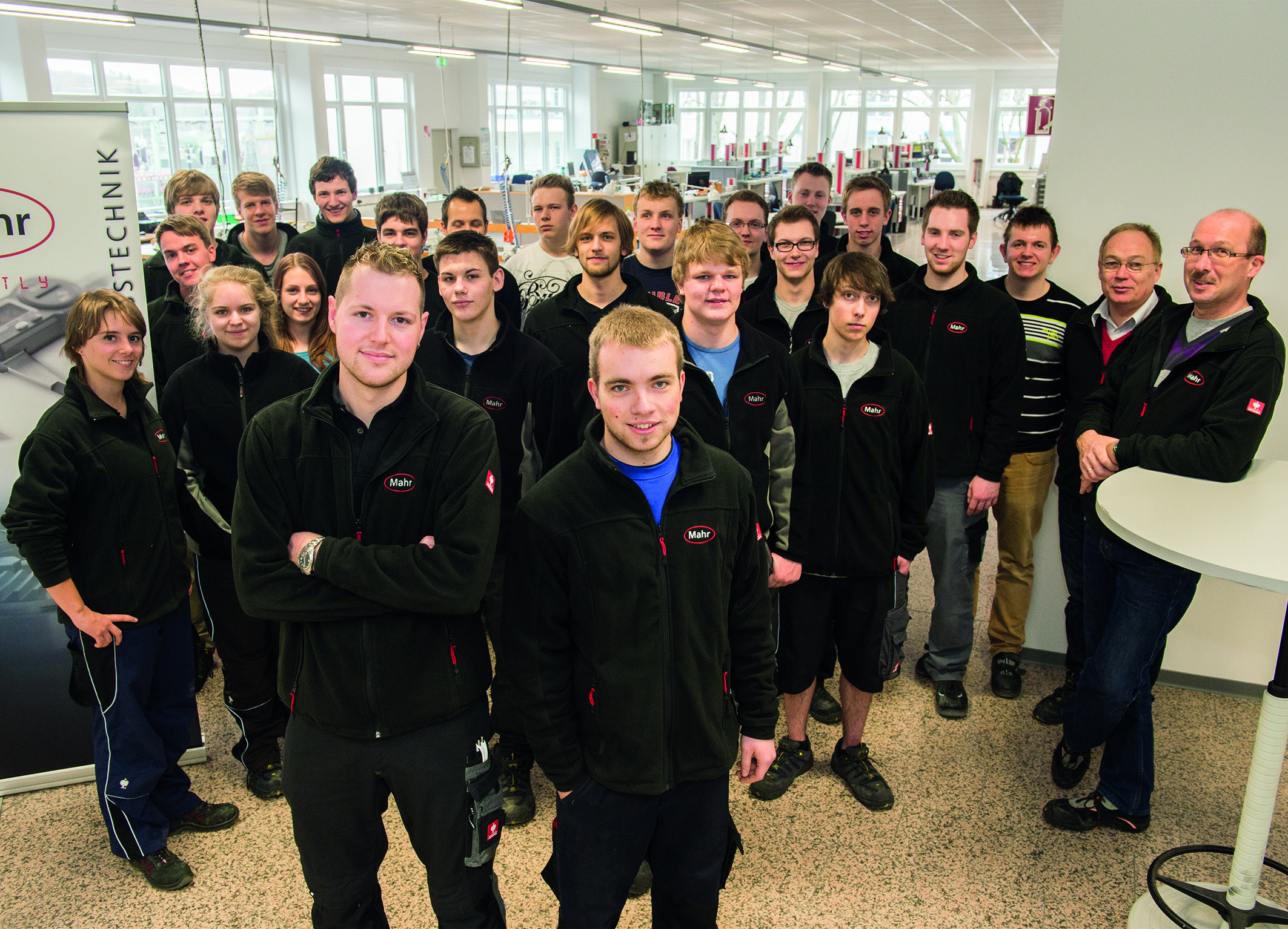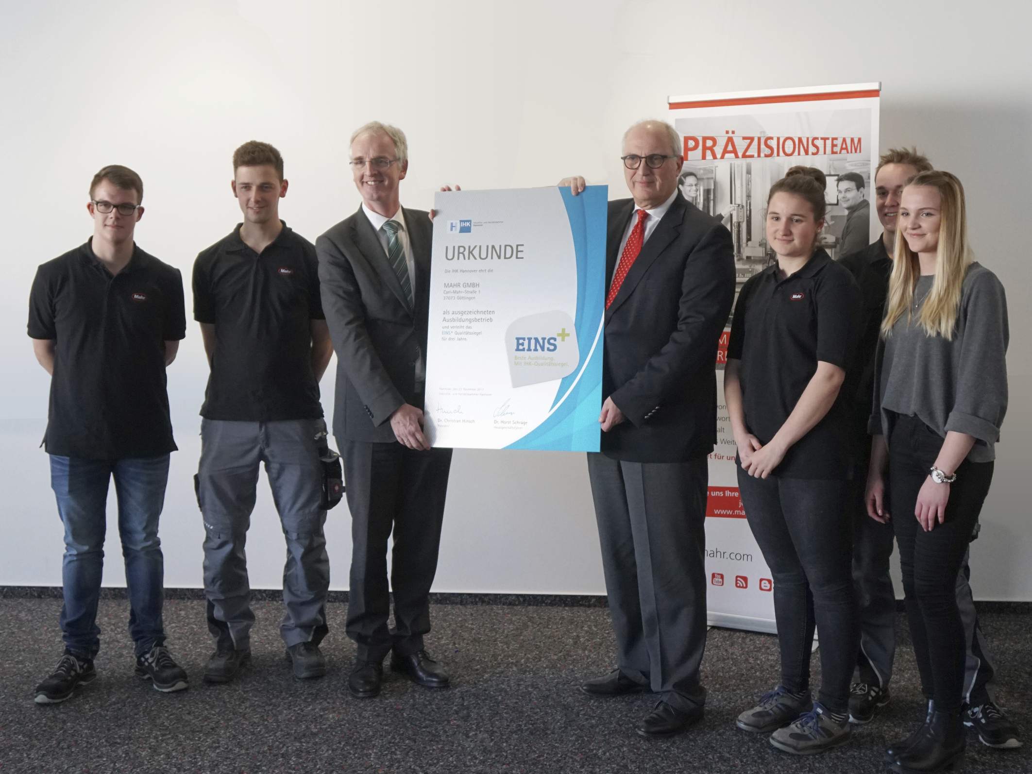 Mahr-Geschäftsführer Stephan Gais (4. v.l.) und Prof. Dr. Günter Hirth von der IHK Hannover mit Auszubildenden der Firma Mahr