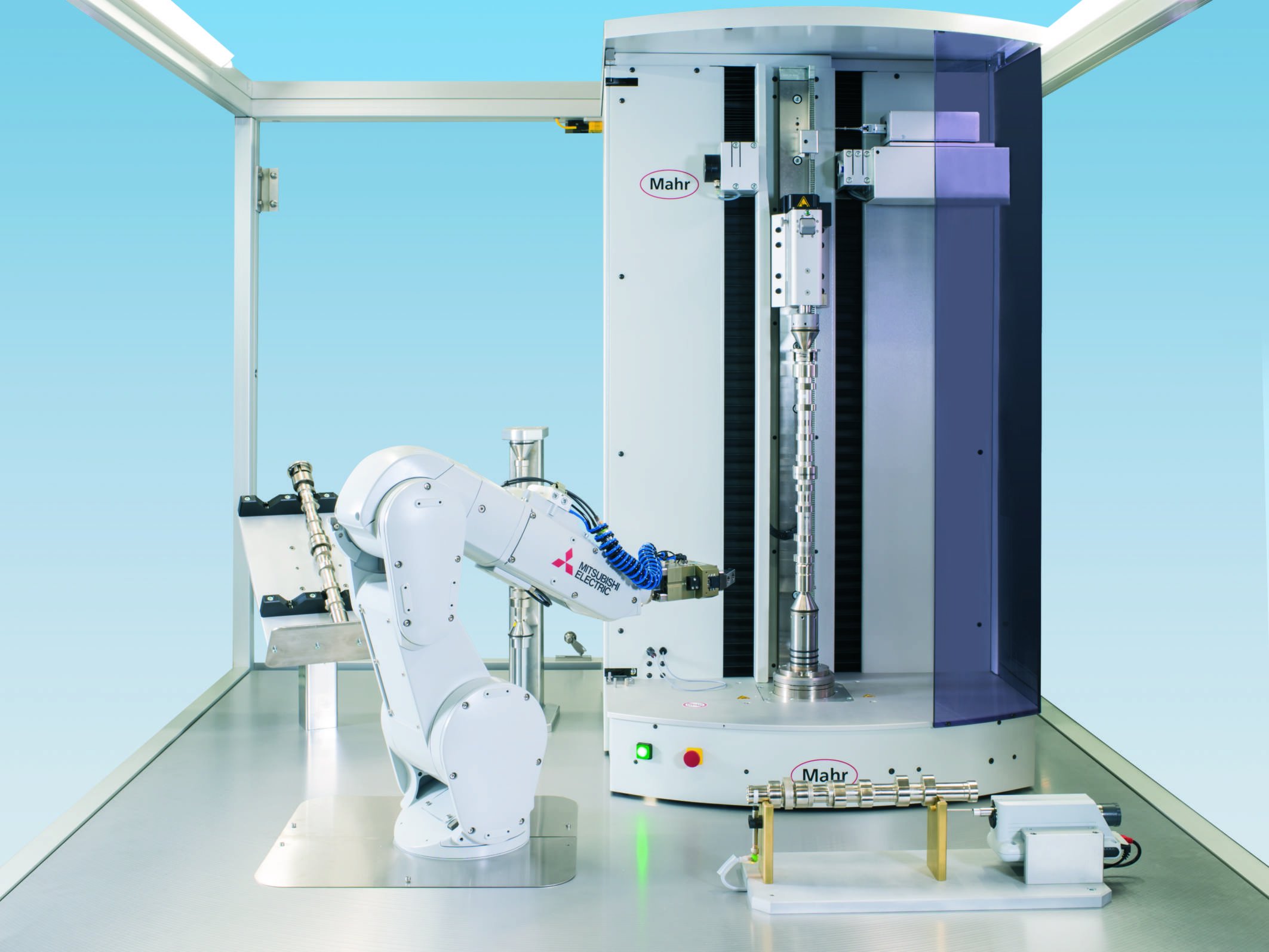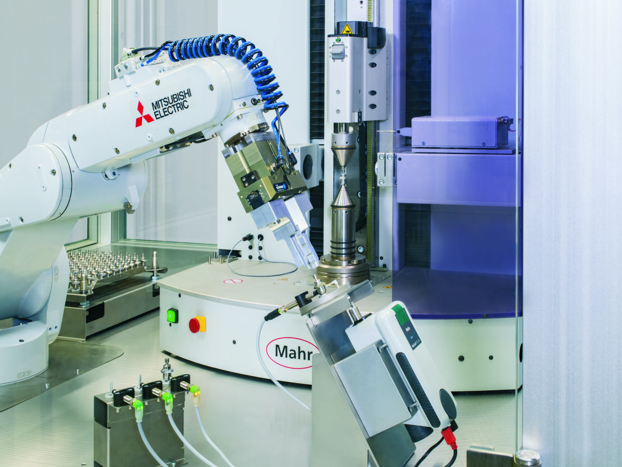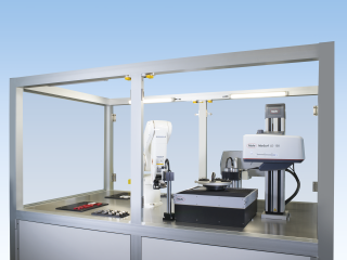 Automatisierungslösung von Mahr: Bei der neuen Entwicklung von Mahr Engineered Solutions belädt ein Roboter den Messplatz bedienerlos. (Foto: Mahr GmbH)