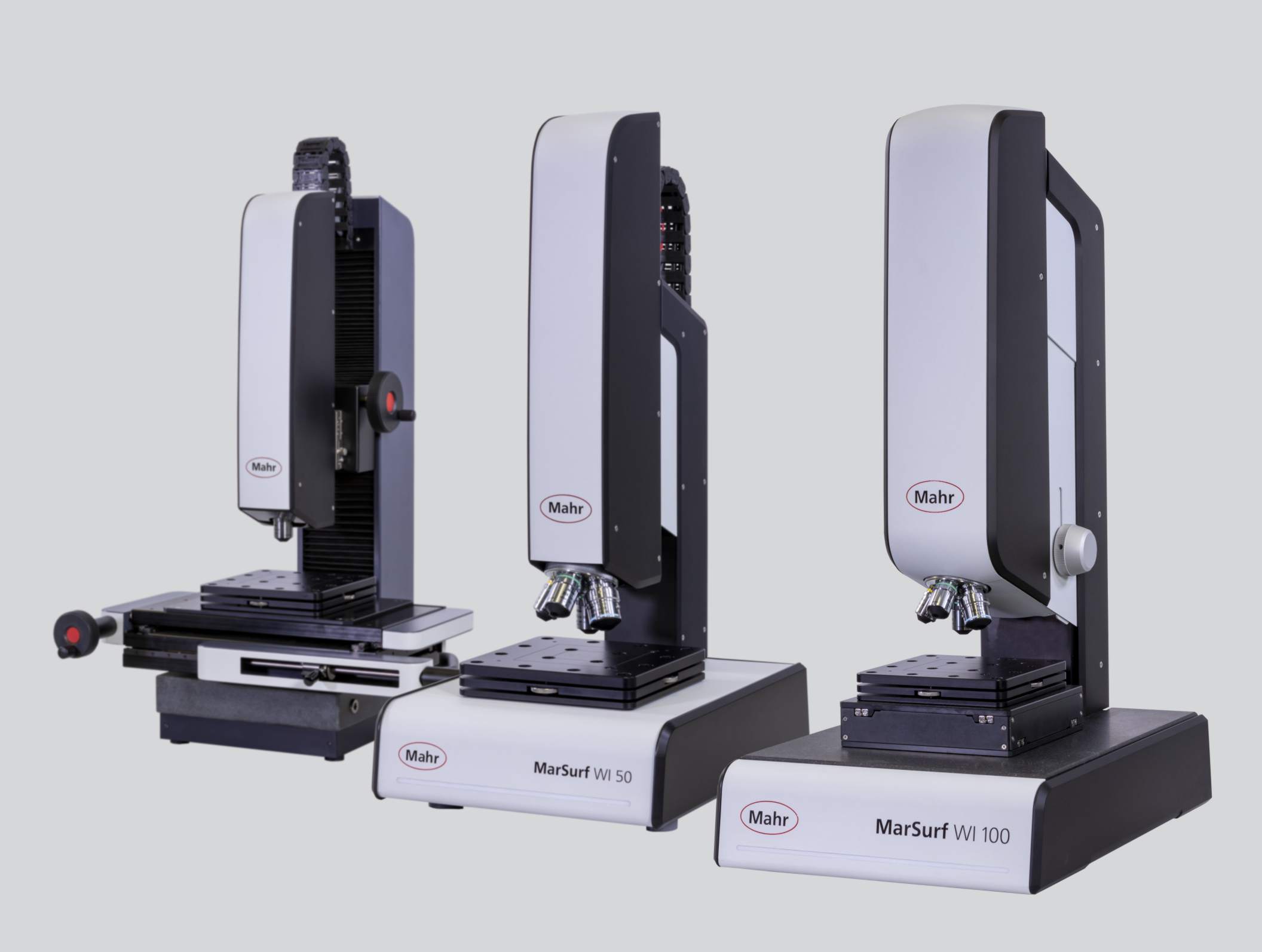 Die drei Weißlichtinterferometer der neuen MarSurf-WI-Serie messen Strukturen und Topografien bis im unteren Nanometerbereich