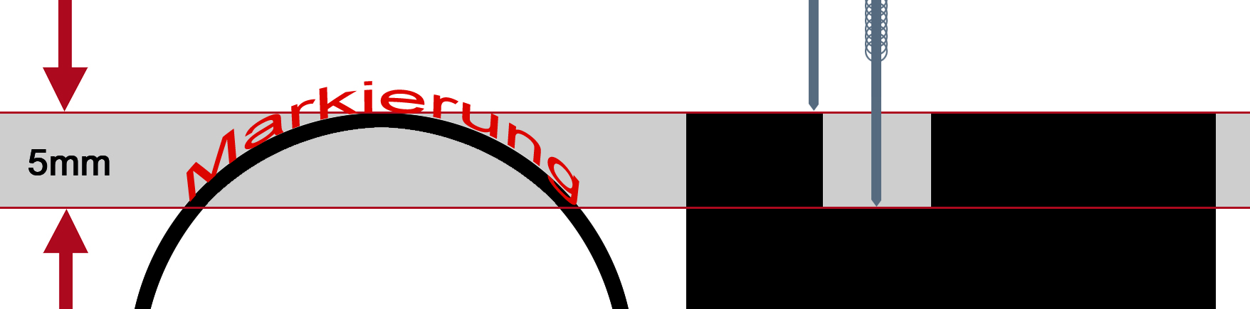 Bei Bauteilen bei denen die Markierung in einem tiefer gelegenen Bereich wie z.B. einer Aussparung im Material erfolgen soll, kann die Markierung auch dort ohne Probleme durchgeführt werden, ohne dass spezielle Vorrichtungen benötigt werden. Voraussetzung ist hierbei die maximale Tiefe von 5mm zu beachten.