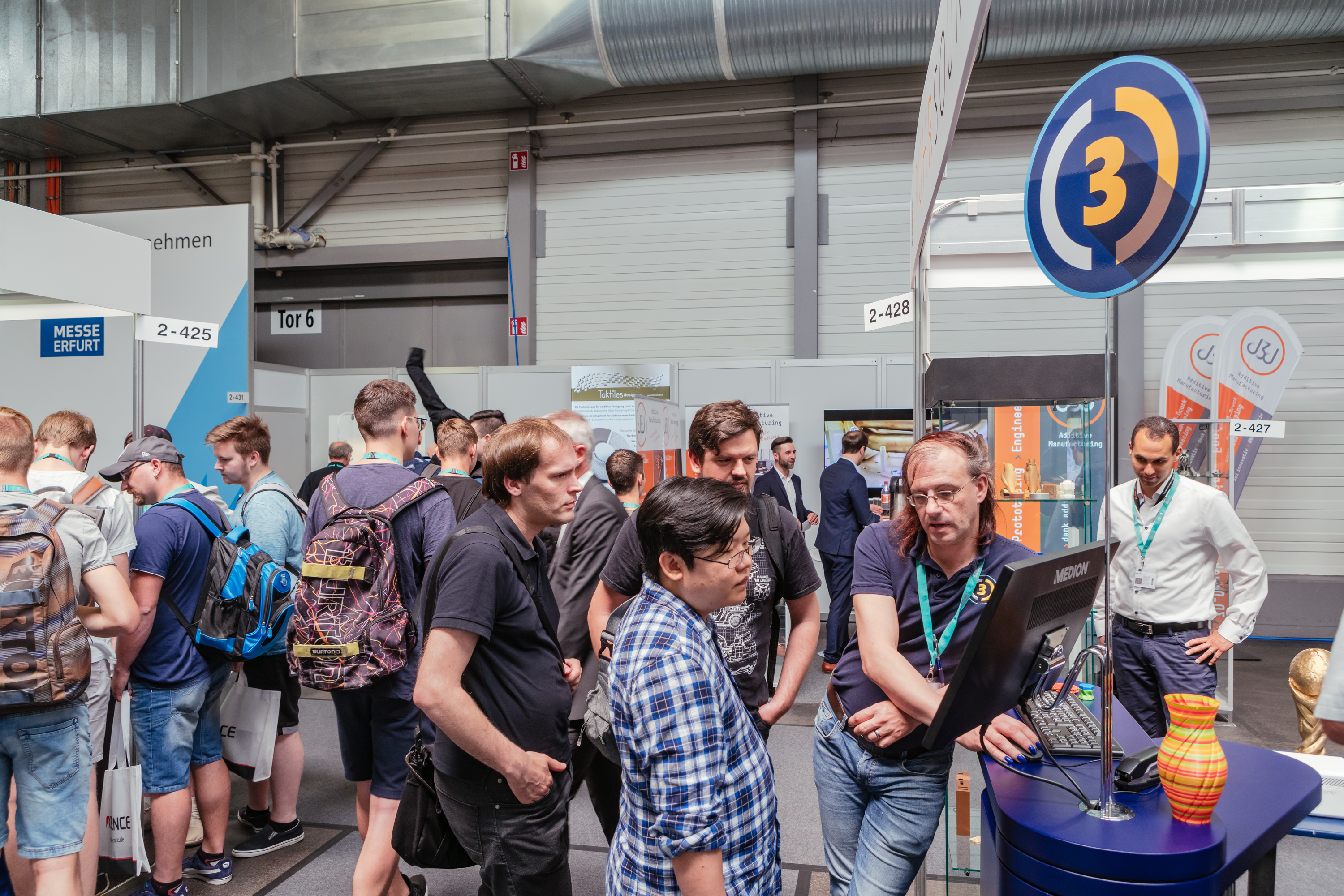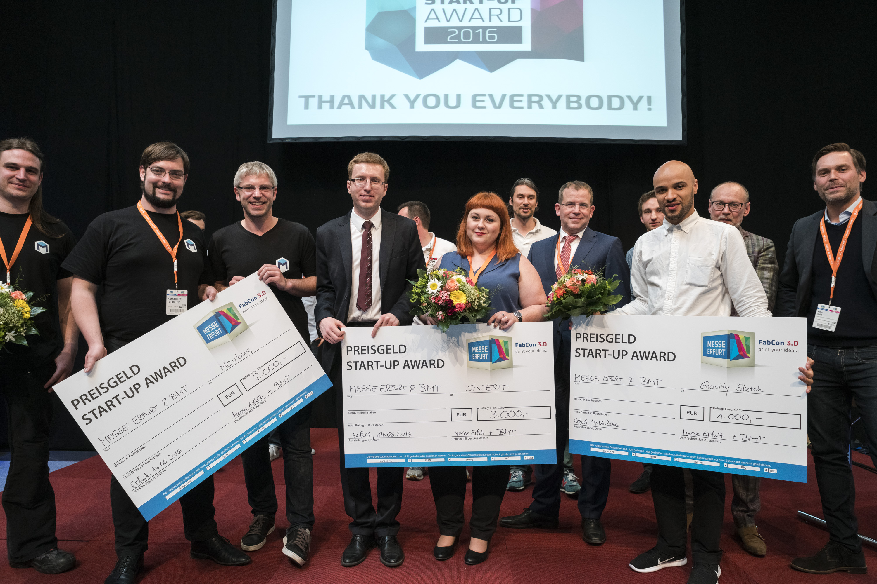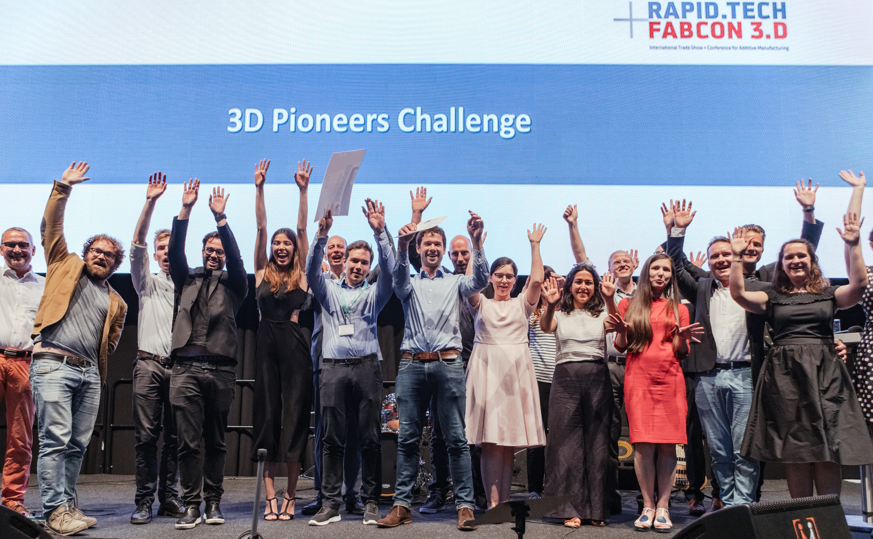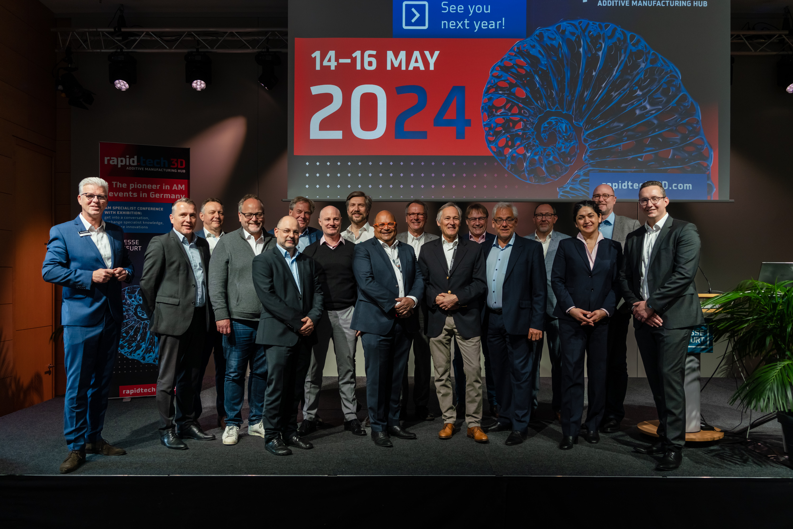 Der Fachbeirat der Rapid.Tech 3D steht bereit: (vlnr) Diana Keucher (Messe Erfurt GmbH), Carl Fruth (FIT), Ulli Klenk (Siemens Energy), Christoph Hauck (Toolcraft), Dr. Simon Jahn (ifw Jena), Bernhard Langefeld (Roland Berger), Stephan Eelman, Prof. Dr. Gerd Witt (Universität Duisburg-Essen), Dr. Eric Klemp (Eisenhuth), Manuela Braune (Messe Erfurt GmbH), Michael Eichmann (Stratasys), Dr. Özlem Weiss (Expertants), Ralf Schumacher (medartis), Wolfgang Mildner (MSWtech), Michael Kynast (Messe Erfurt GmbH), Dr. Bernhard Müller (Fraunhofer IWU), Peter Jain (freemelt), Daniel Hund ( AM Solutions)