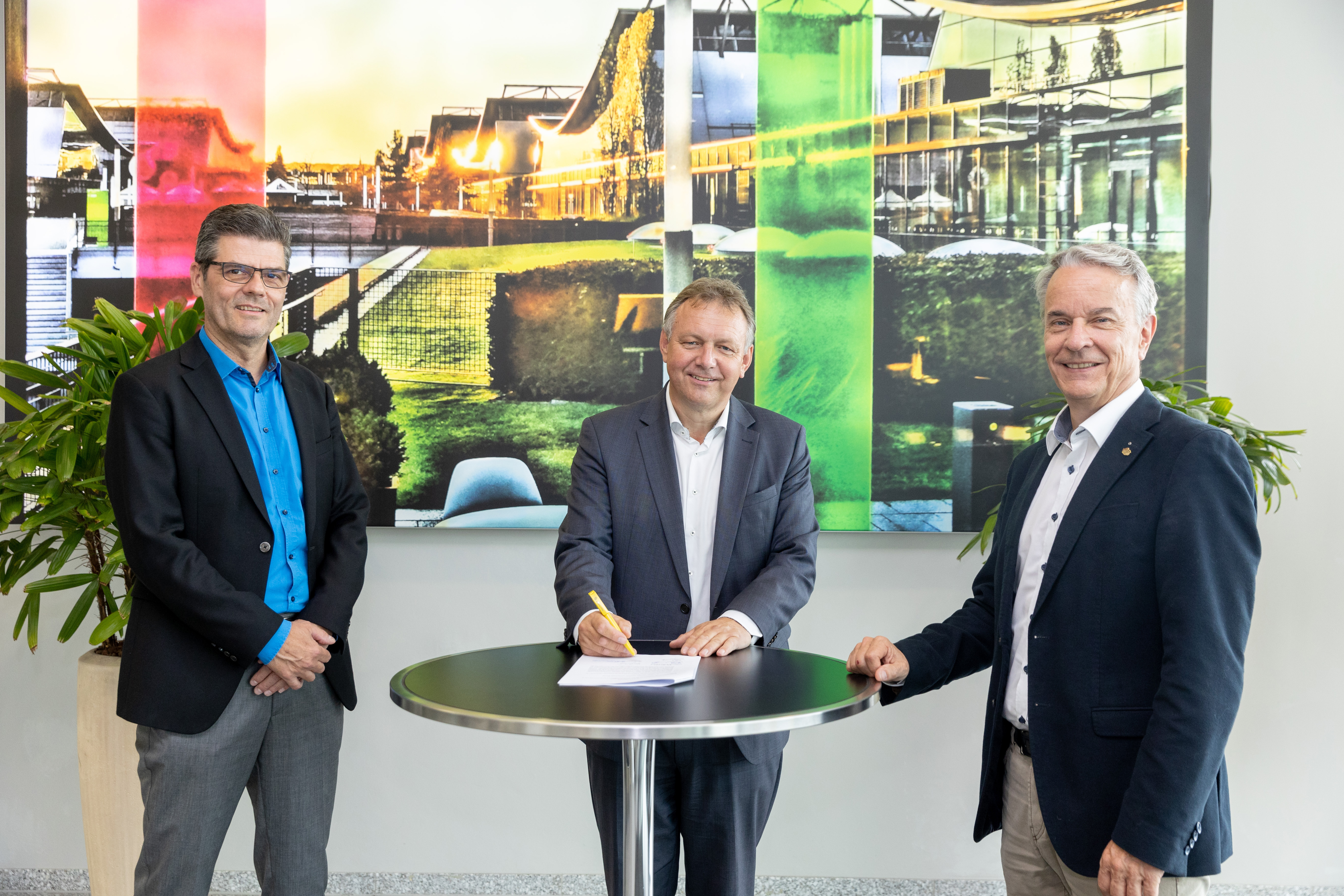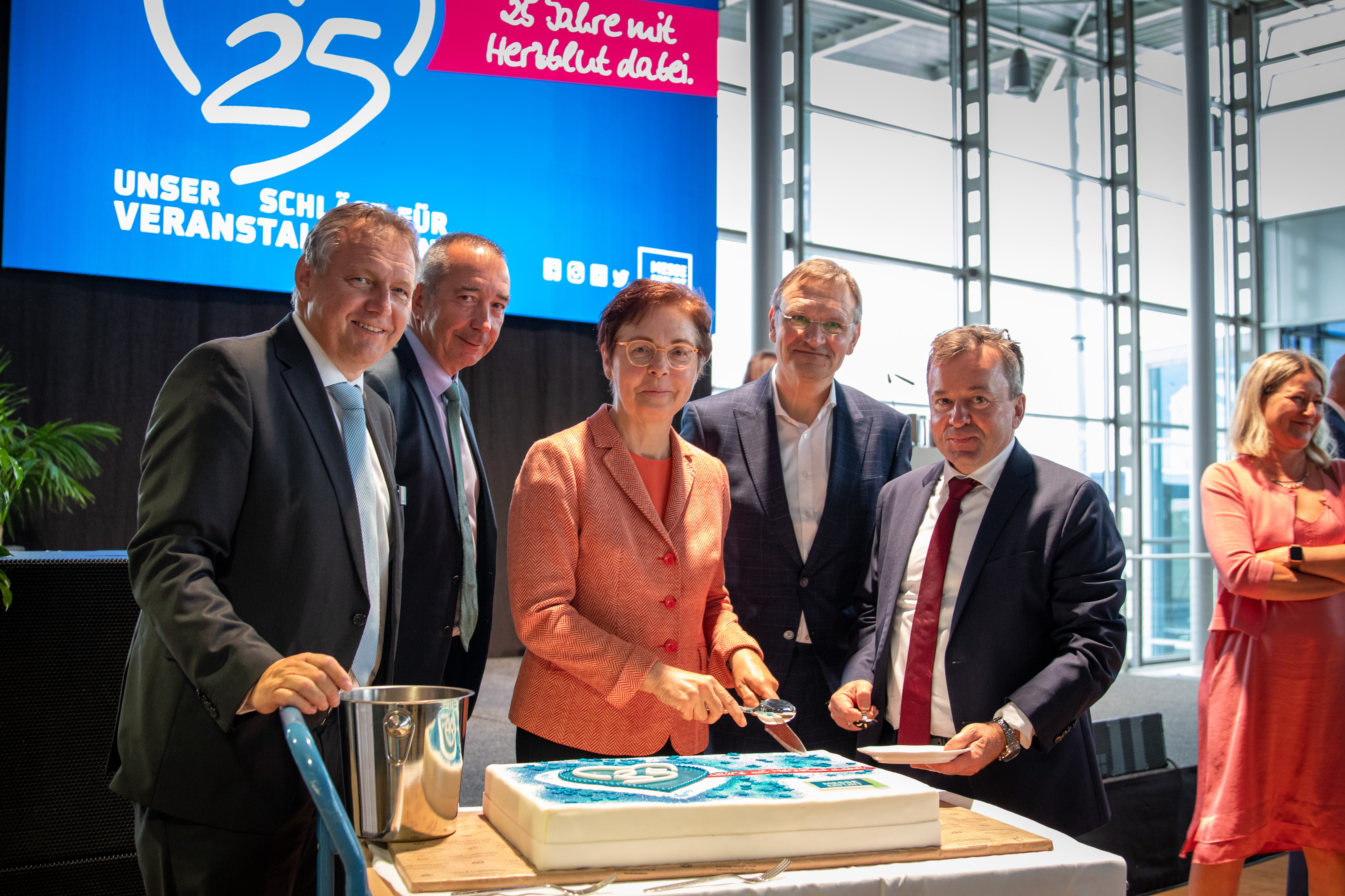 Michael Kynast, Geschäftsführer der Messe Erfurt GmbH erhielt Glückwünsche von u.a. H.J Erbel, Ehrenvorstand FAMA, H. Taubert, Thüringer Finanzministerin, Dr. Ch. Junge, Präsident der Landeszahnärztekammer Thüringen und Dr. K. Wagner, Präsident Thüringer Bauernverband (Bild von links), 25 Jahre Messe Erfurt, Quelle: Messe Erfurt GmbH, Dennis Schmelz