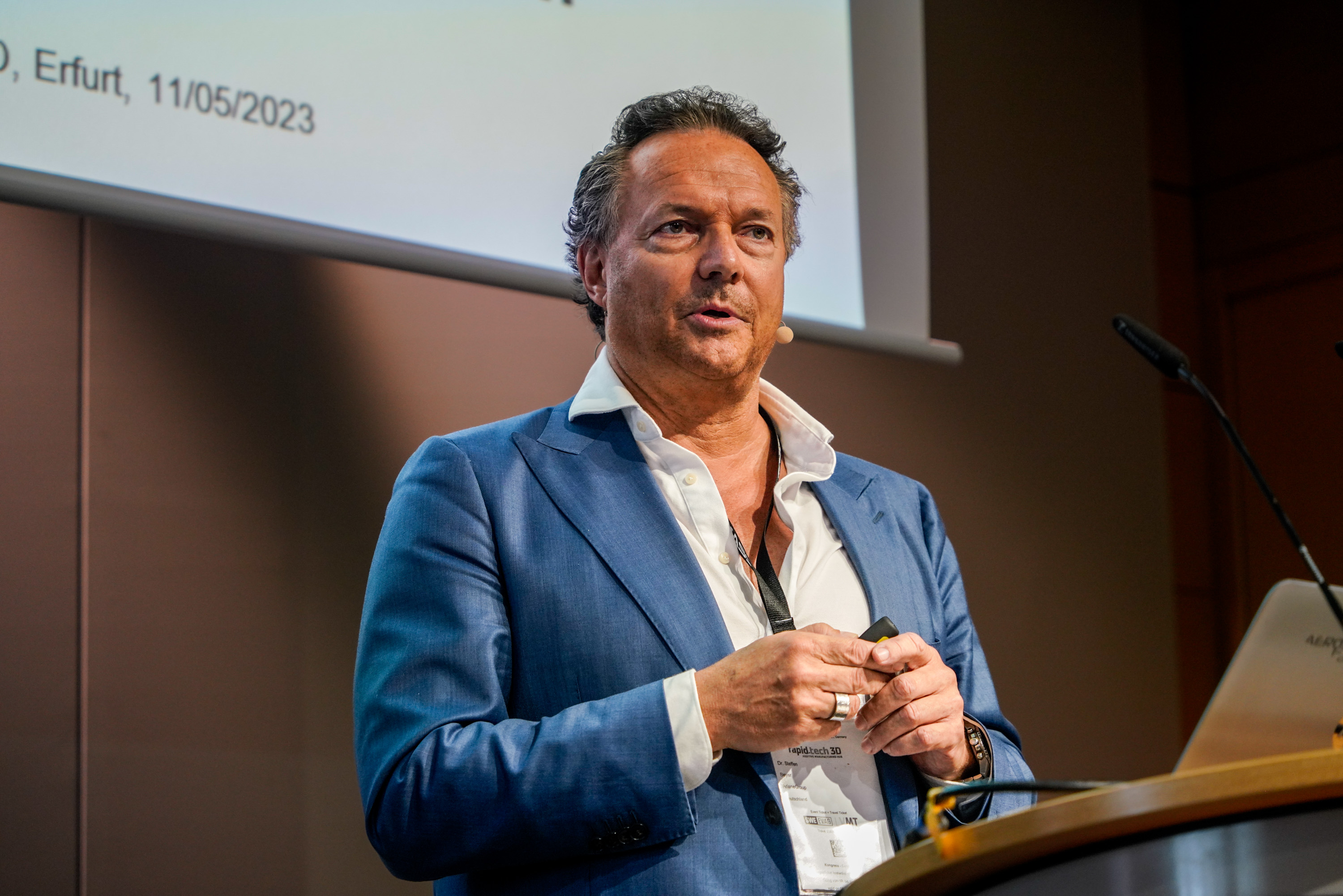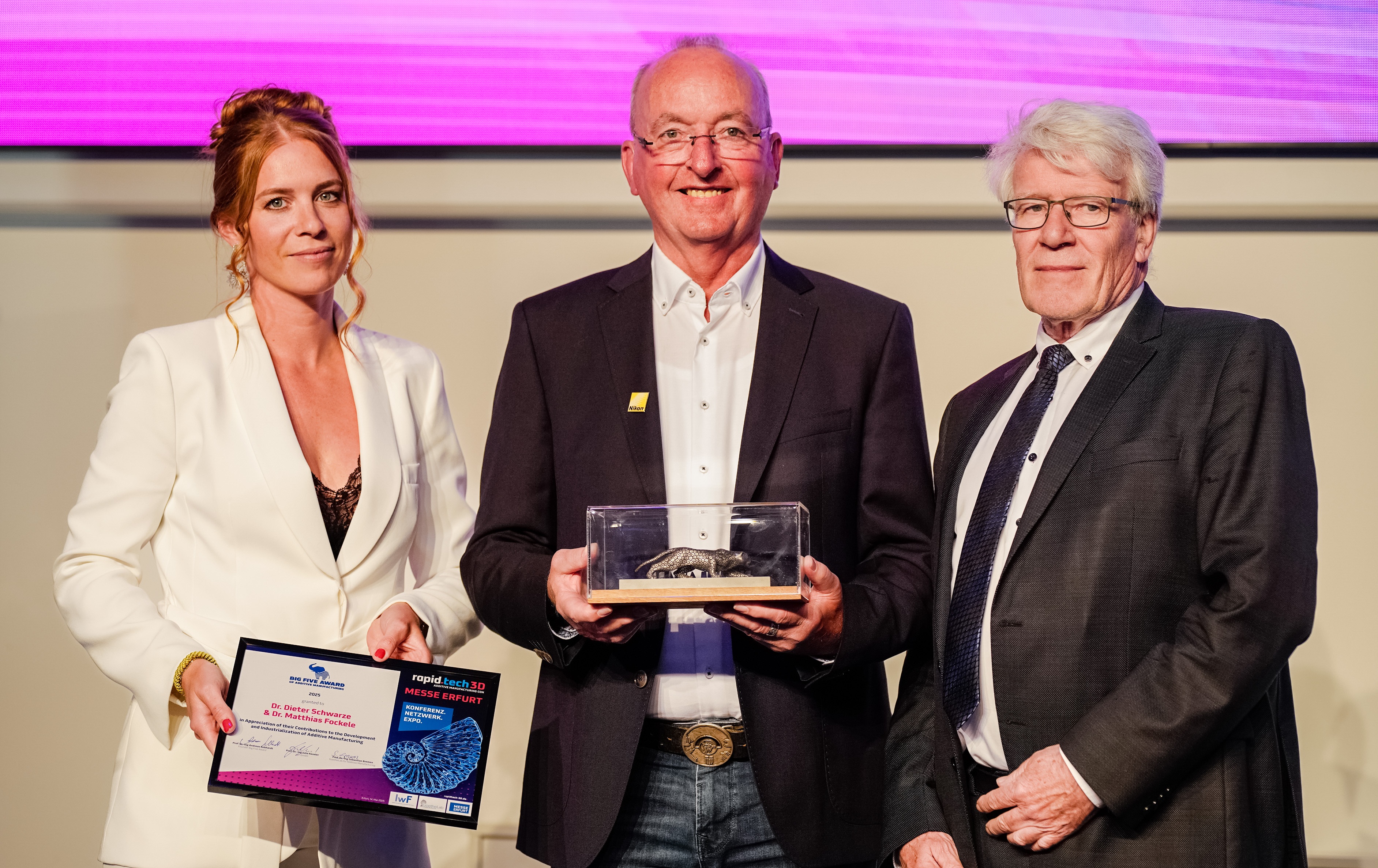 v.l. Prof. Gerd Witt, Universität Duisburg-Essen, Lehrstuhl Fertigungstechnik; Michael Kynast, Geschäftsführer Messe Erfurt GmbH; Wolfgang Tiefensee, Thüringer Minister für Wirtschaft, Wissenschaft und Digitale Gesellschaft; Prof. Dr. Christiane Beyer, Lehrstuhl Produktentwicklung und Konstruktion & Institutsleiter, Otto-von-Guericke-Universität Magdeburg, Fachbeiratsvorsitzender Michael Eichmann, Stratasys GmbH, Credit: Messe Erfrut GmbH, Christian Seeling