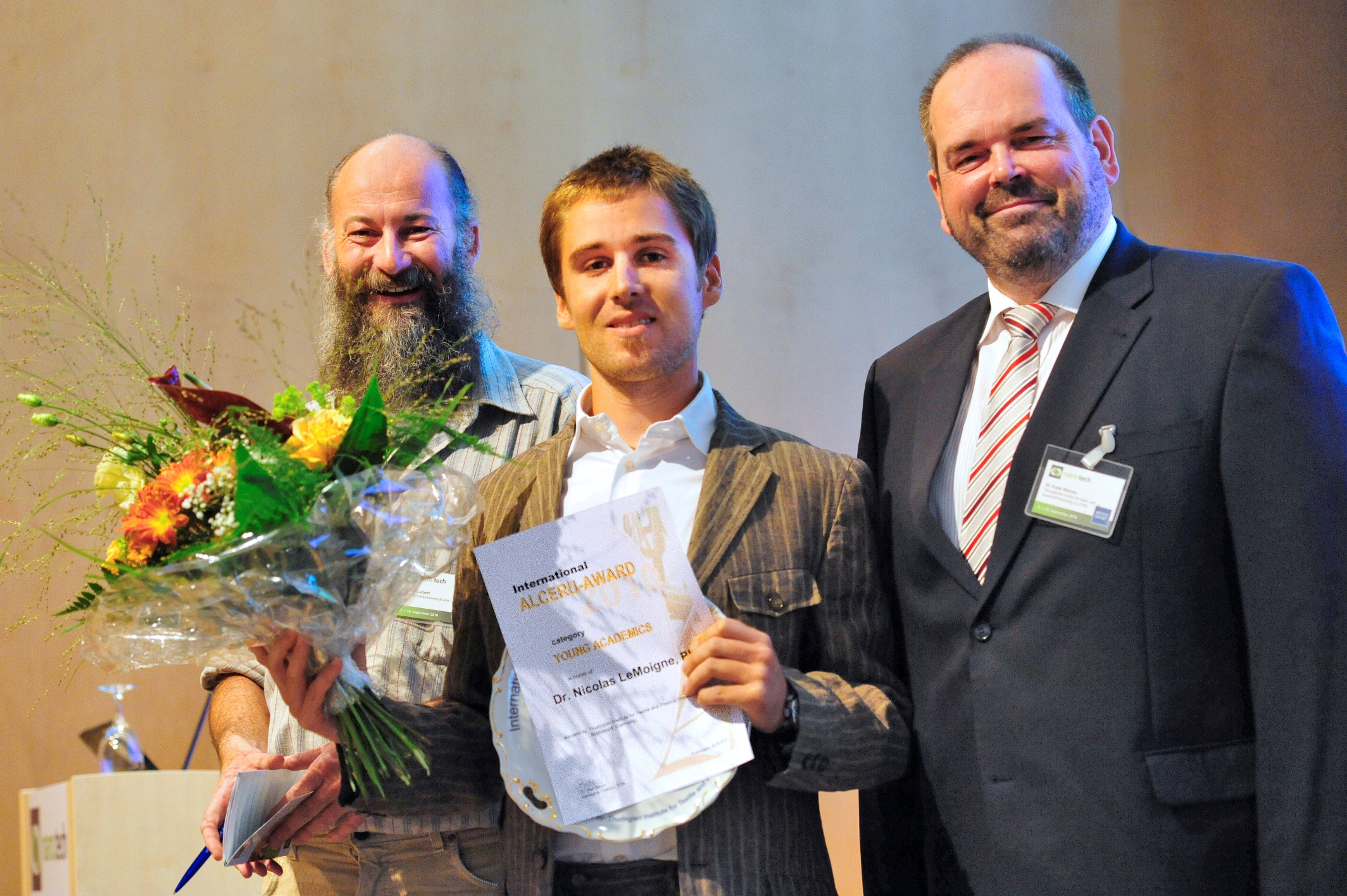 (pressebox) (Erfurt, 10.09.2010) 52 speakers and about 230 participants from 14 countries are currently meeting at the CongressCentre Erfurt. As part of the 8th International Symposium "Materials made of Renewable Resources" Dr. Nicolas LeMoigne from France is receiving the renowned "ALCERU Award 2010".