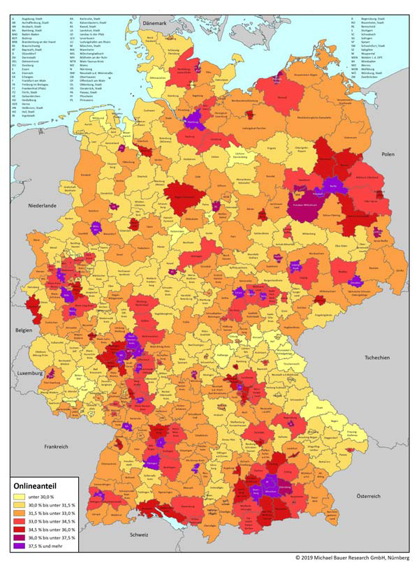 Assortment and Online Purchasing Power 2019 in Germany: Online share in consumer electronics