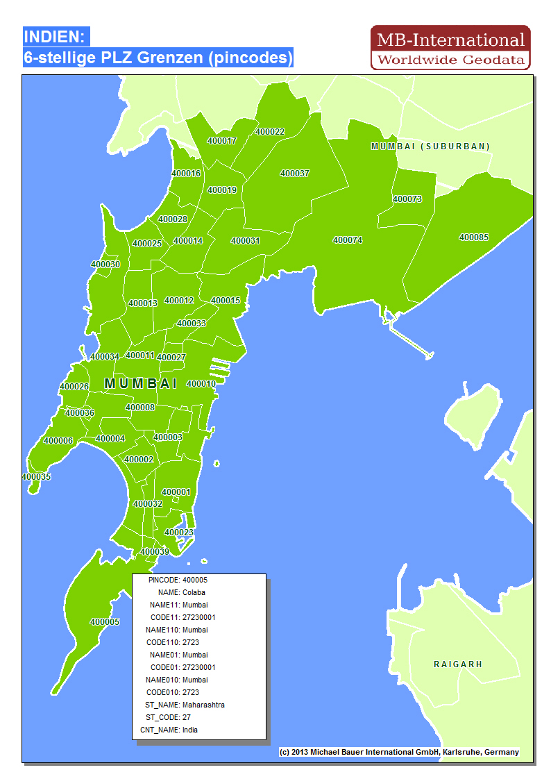 Indien: 6-stellige Postleitzahlgrenzen (Postal Index Number)