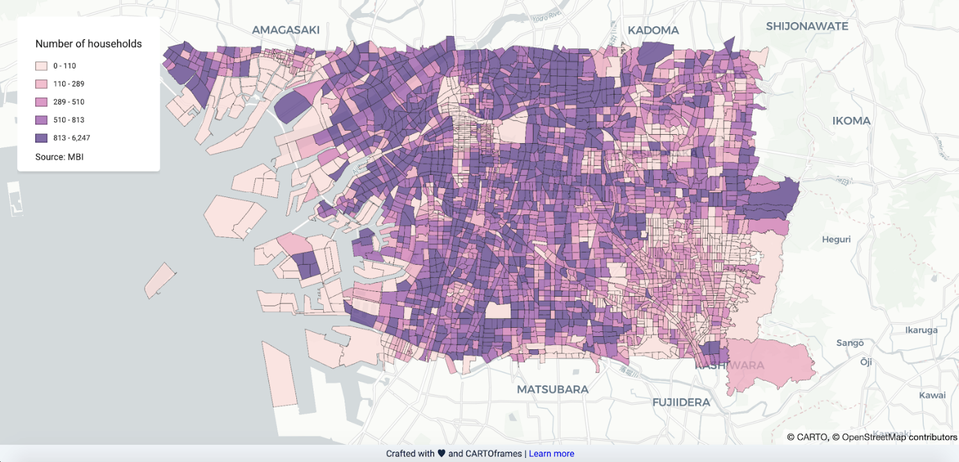 Number of Households Osaka, Japan with CARTOframes and MBI Data