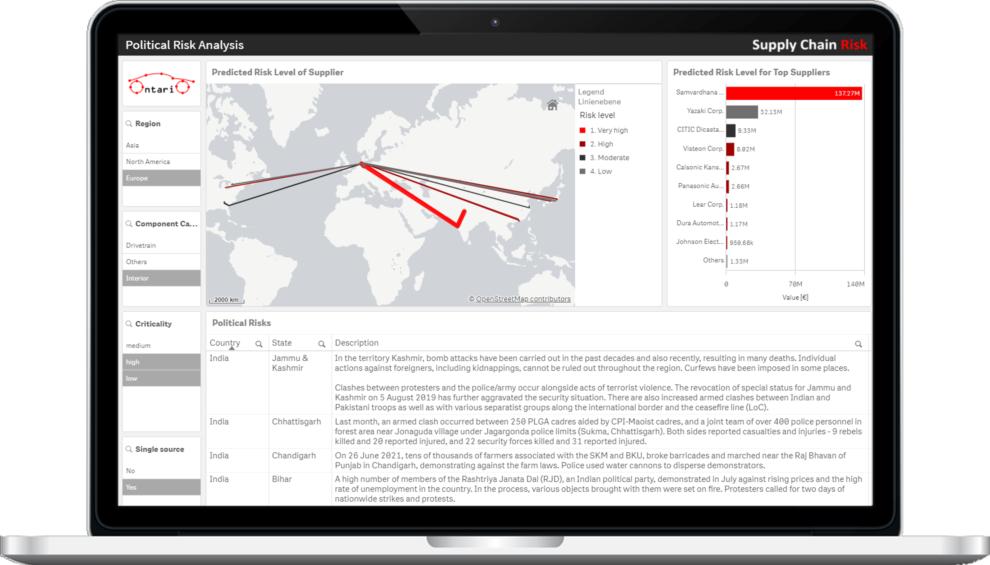 Durch die Integration der MBI CONIAS Daten in die Lösung von Orbica können sowohl klimabedingte Veränderungen als auch geopolitische Entwicklungen abgebildet werden.