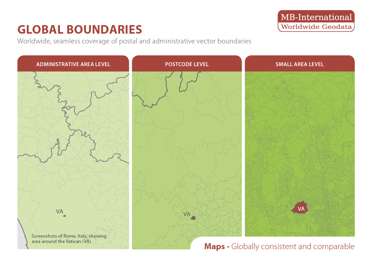 Weltweite, digitale Gebietsgrenzen – postalisch – administrativ- mikro