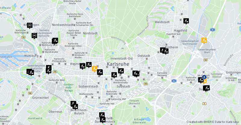 Baustellenplanung mit routingfähigen Straßendaten von HERE Technologies / beispielhafte Darstellung